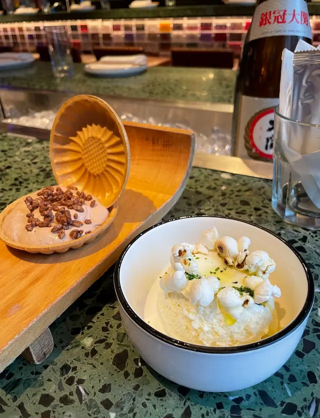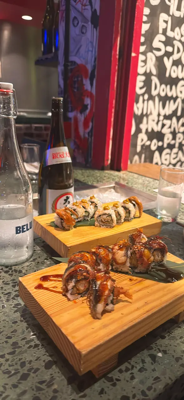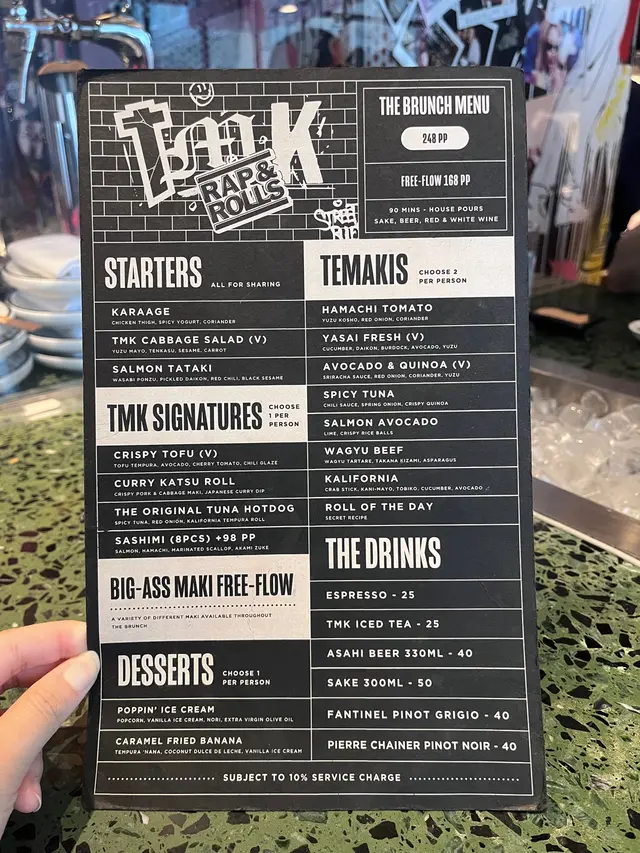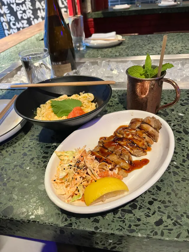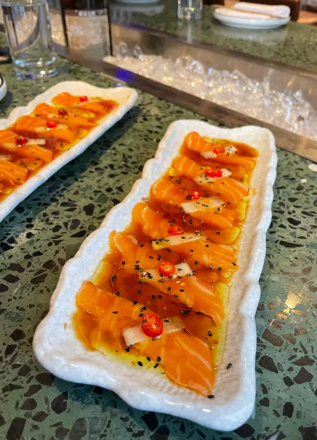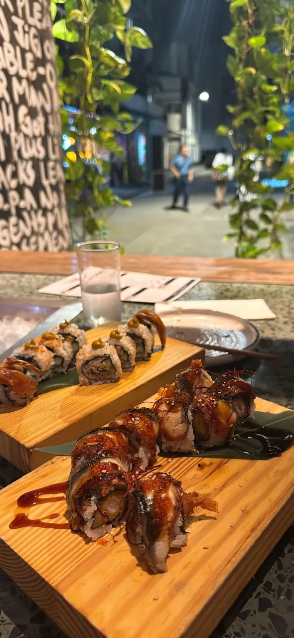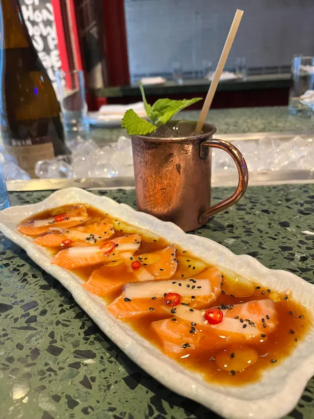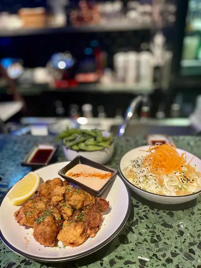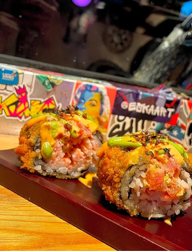 Quietly hidden away in Wan Chai's moon street, this spot was a quick walk from Exit F from the Admiralty Station. I was quickly enraptured by the odd clash of nightclub-like lighting, the wall of stereos, and the neon lights. The internal design of the restaurant was quite an interesting take on Japanese and Western fusion; the dim lanterns that hovered above; the walls of newspaper scraps and spray painted pop art; the rivers of ice that held up premium bottles of wine (which somehow provided decent air conditioning against the hk summer). Visually, I was beyond impressed. Would definitely recommend this place for a small group of your closest pals.As we seated, we were greeted with lovely staff; Our server took great kindness and patience teaching us the ingredients in each dish, what serving sizes were to be expected, and the most popular dishes they were known for. As a customer, I felt easily cozy and relaxed as I took in the classy and elegant atmosphere.Likewise, the food that came after did not disappoint. For a table of 2, we were recommended to order a snack, a tataki, and two maki rolls. Firstly the Hiyayakko; I will never forget the smoothness of the tofu which complemented greatly with the heavenly seasoned soy glazed mushrooms. Never knew soy sauce could be paired with tofu so well. Next the salmon tataki; Meh, I usually love salmon but I didn't enjoy how the edges were seared. Definitely could've tasted better completely raw in my opinion. What blew me away, was the Curry Crab Crunch and the T-dragon, both amazing choices that combined the soft vinegary rice with a fried crunch of crab/shrimp. The Curry Mayo on top was quite a nice visual touch too.However, all my joys fell through as soon as I saw the bill, almost $600 dollars. To be fair, I shouldn't be too surprised since this place was located between Wan Chai and Admiralty, but MAN did I feel broke. I wish amazing quality restaurants stopped forcing their customers to pay $45 just for a drink of water, while the 10% service charge was just as nasty too. Specifically, I wish we gotten more portions if we were to pay that much. On another note, I also heard from my friends who tried their Dai Ninki Setto set, and were just as disappointed with the prices. They had to pay like $300 per person (it was his birthday), and had to share ONE BOWL OF UDON between the three of them. I can understand sharing the appetizers, but expecting three dudes to share the same small bowl of noodles is kinda wild. But hey, I haven't ordered this set yet, so please read this with a grain of salt.Overall, amazing unforgettable food that you can rely on for special occasions between 2-4 people, but please order a la carte instead of the set I guess haha.…查看更多