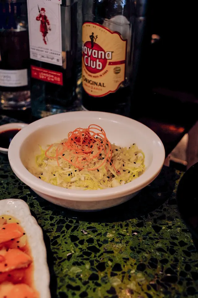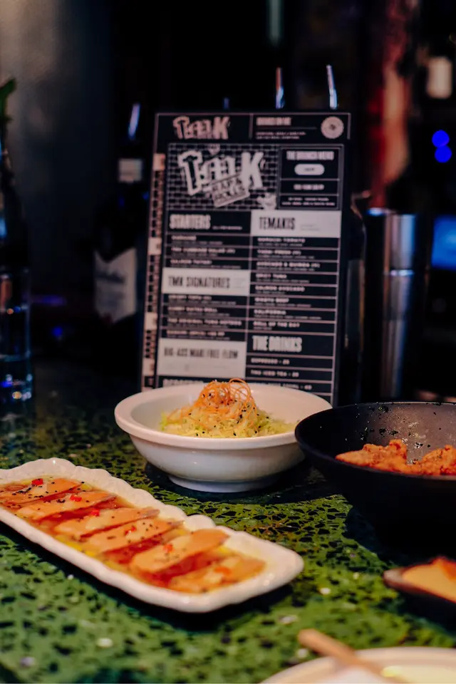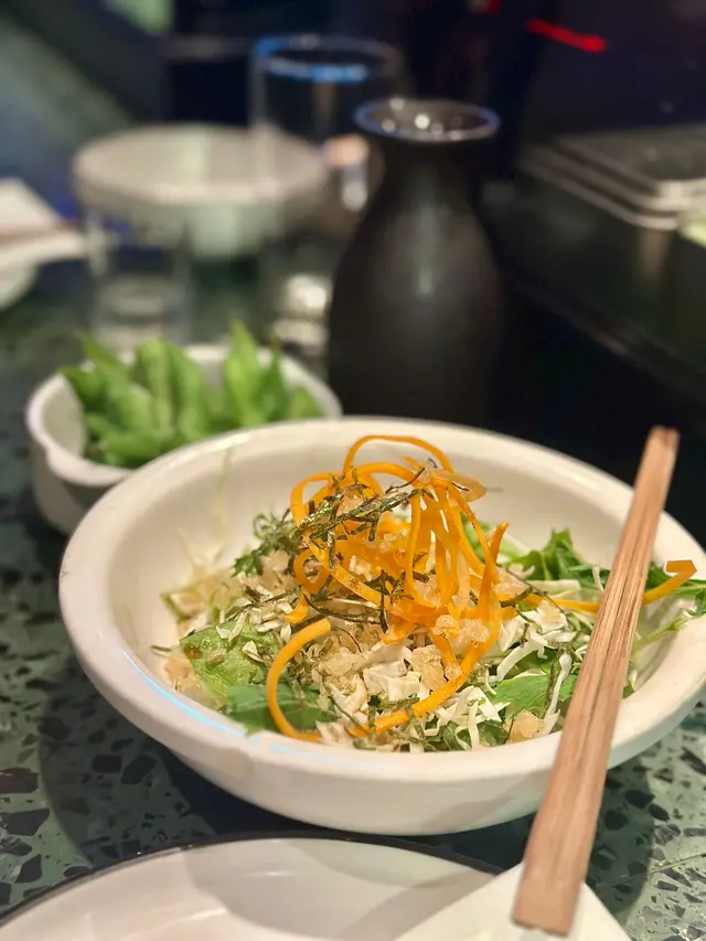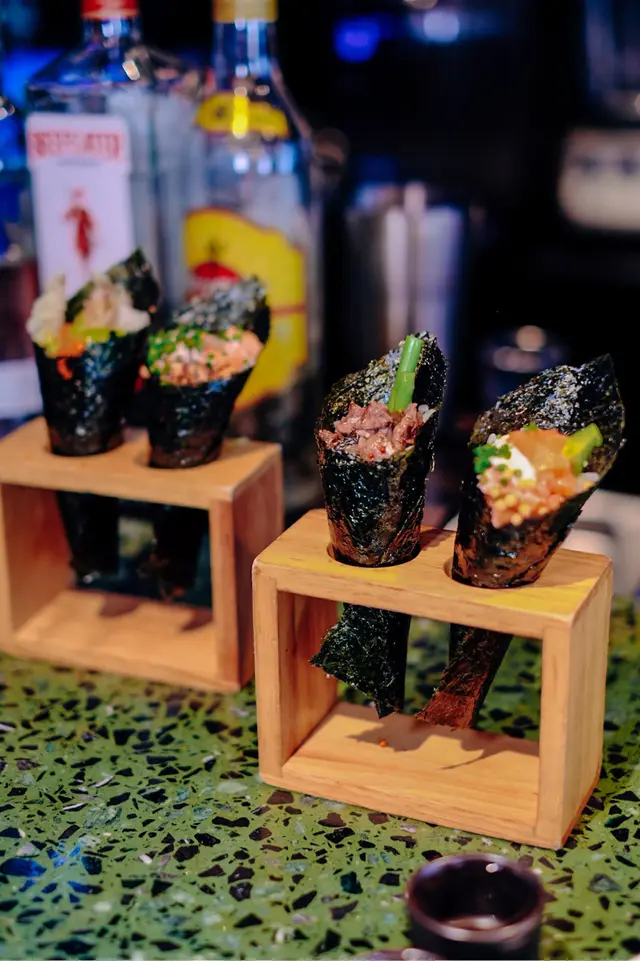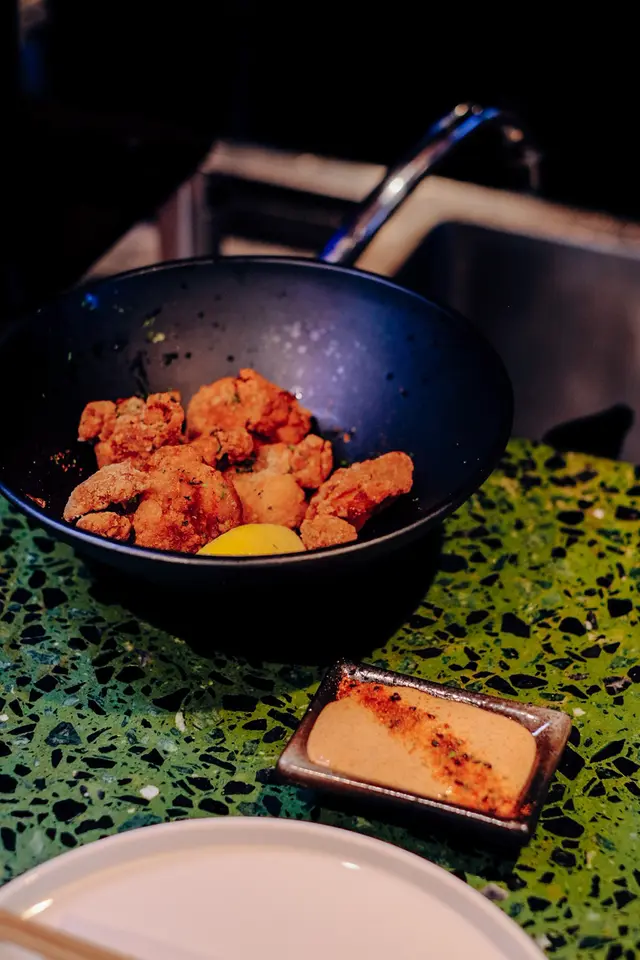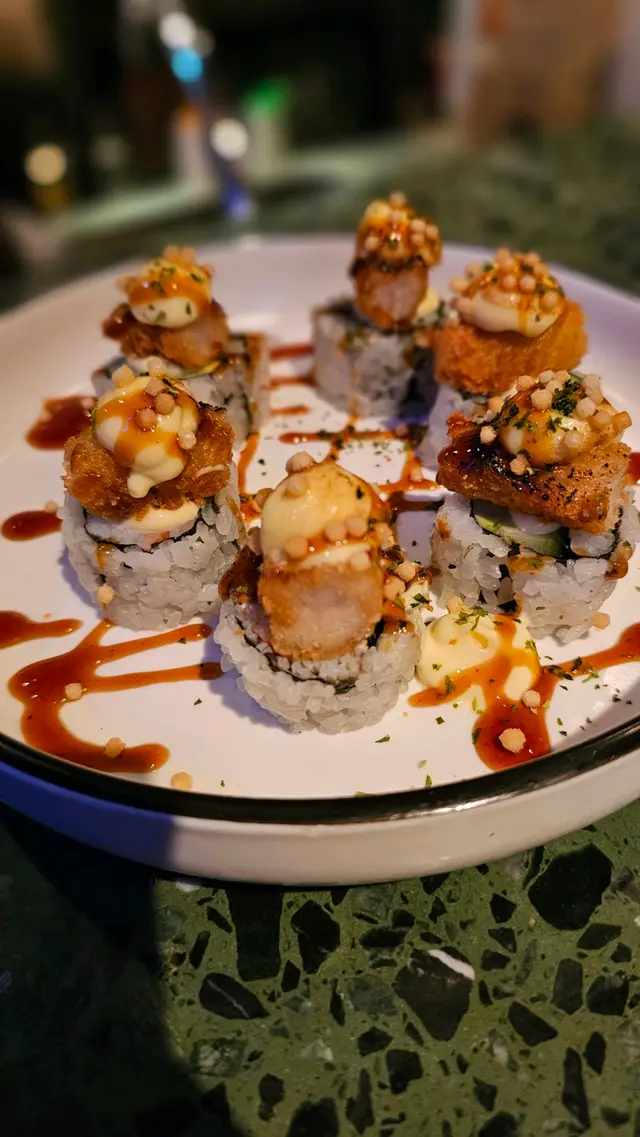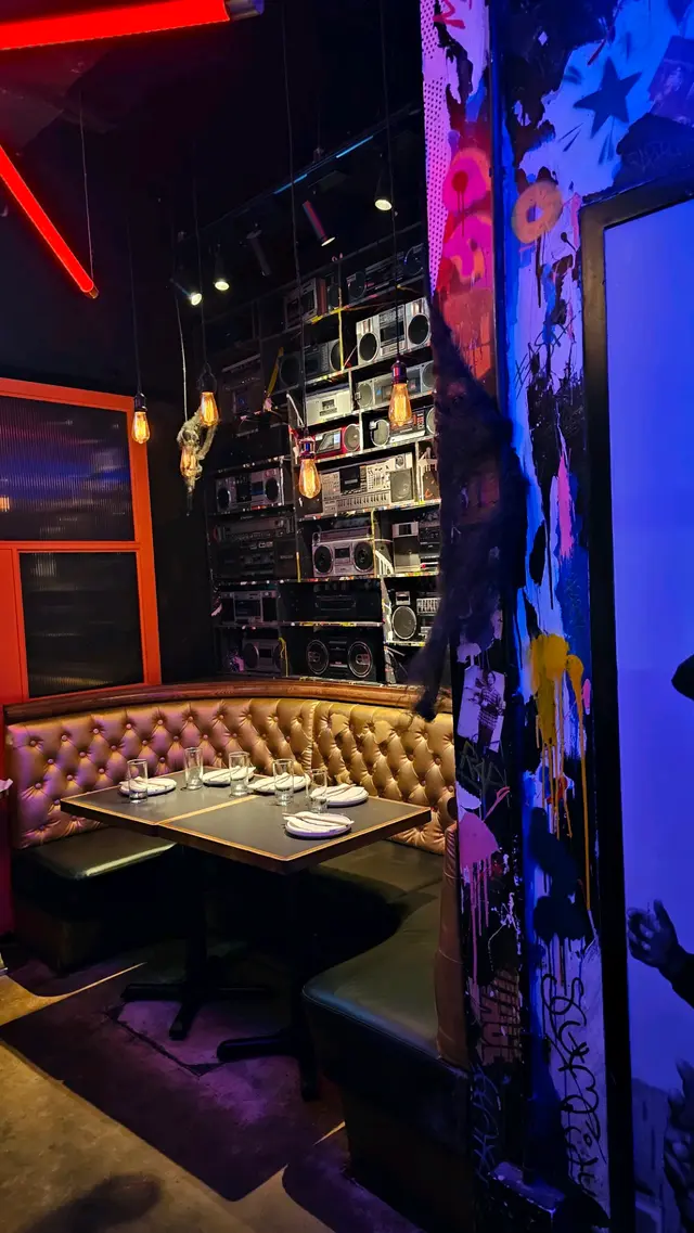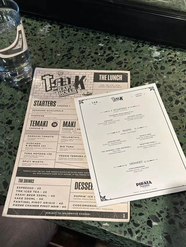 Quietly hidden away in Wan Chai's moon street, this spot was a quick walk from Exit F from the Admiralty Station. I was quickly enraptured by the odd clash of nightclub-like lighting, the wall of stereos, and the neon lights. The internal design of the restaurant was quite an interesting take on Japanese and Western fusion; the dim lanterns that hovered above; the walls of newspaper scraps and spray painted pop art; the rivers of ice that held up premium bottles of wine (which somehow provided decent air conditioning against the hk summer). Visually, I was beyond impressed. Would definitely recommend this place for a small group of your closest pals.As we seated, we were greeted with lovely staff; Our server took great kindness and patience teaching us the ingredients in each dish, what serving sizes were to be expected, and the most popular dishes they were known for. As a customer, I felt easily cozy and relaxed as I took in the classy and elegant atmosphere.Likewise, the food that came after did not disappoint. For a table of 2, we were recommended to order a snack, a tataki, and two maki rolls. Firstly the Hiyayakko; I will never forget the smoothness of the tofu which complemented greatly with the heavenly seasoned soy glazed mushrooms. Never knew soy sauce could be paired with tofu so well. Next the salmon tataki; Meh, I usually love salmon but I didn't enjoy how the edges were seared. Definitely could've tasted better completely raw in my opinion. What blew me away, was the Curry Crab Crunch and the T-dragon, both amazing choices that combined the soft vinegary rice with a fried crunch of crab/shrimp. The Curry Mayo on top was quite a nice visual touch too.However, all my joys fell through as soon as I saw the bill, almost $600 dollars. To be fair, I shouldn't be too surprised since this place was located between Wan Chai and Admiralty, but MAN did I feel broke. I wish amazing quality restaurants stopped forcing their customers to pay $45 just for a drink of water, while the 10% service charge was just as nasty too. Specifically, I wish we gotten more portions if we were to pay that much. On another note, I also heard from my friends who tried their Dai Ninki Setto set, and were just as disappointed with the prices. They had to pay like $300 per person (it was his birthday), and had to share ONE BOWL OF UDON between the three of them. I can understand sharing the appetizers, but expecting three dudes to share the same small bowl of noodles is kinda wild. But hey, I haven't ordered this set yet, so please read this with a grain of salt.Overall, amazing unforgettable food that you can rely on for special occasions between 2-4 people, but please order a la carte instead of the set I guess haha.…查看更多