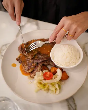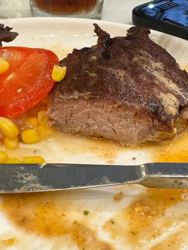 見好耐無嚟食,就幫襯下啦,叫左兩個Lunch set, 其中一個係$89 嘅牛扒餐,加$18 就跟餐湯同飲品。 個牛扒嚟到,一望就見到overcooked 燶晒,好心燶晒就唔好比人啦,人地有味覺㗎⋯⋯ 之後都試下食,但放入口咬唔開,算數,放棄⋯⋯ 有同個男侍應講返,但佢就算肯換,我都唔敢食,因為其實一坐低就聽到厨房入面個男人係咁講一d好流利嘅粗口🤬,聽到都驚驚🤪唔會有下次了😝…查看更多