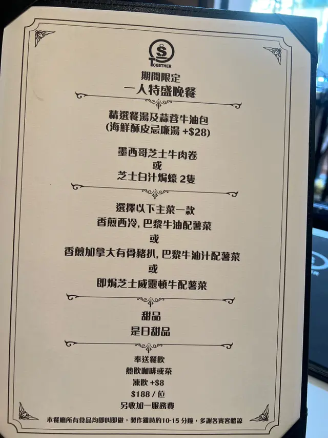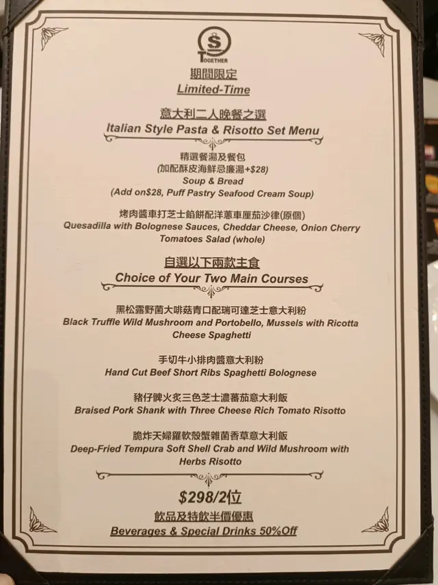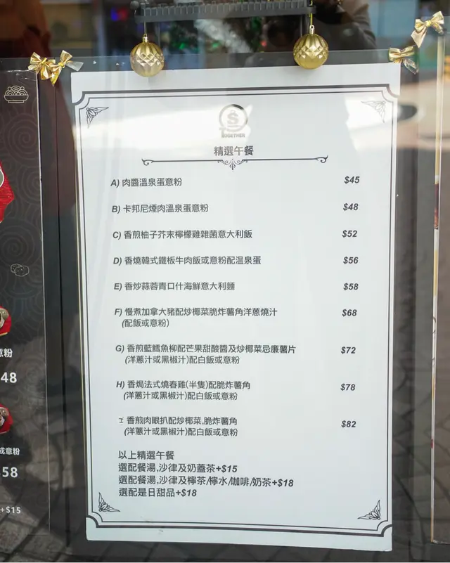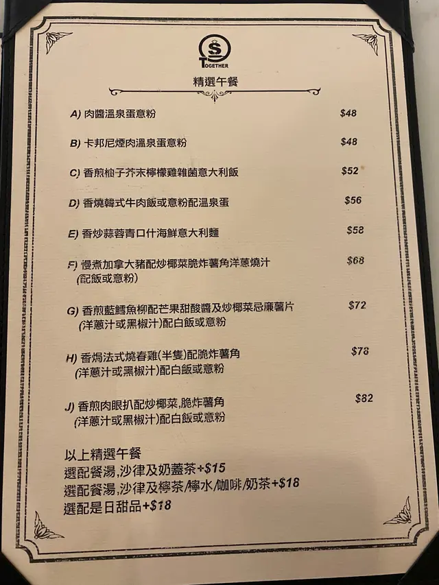 Together (粉嶺) 網址: https://s.openrice.com/QrbS0HPKB00 地址: 香港粉嶺新運路33號粉嶺中心地下159-160號舖 電話: +852 21554488