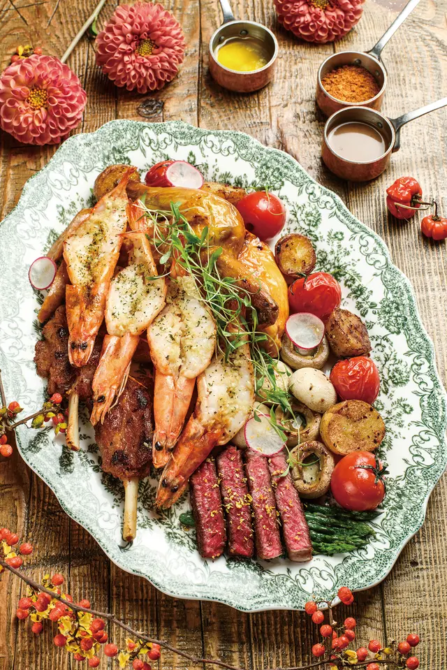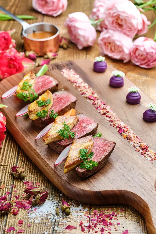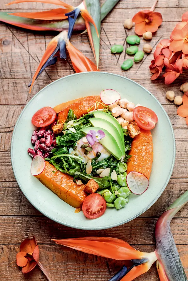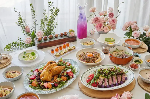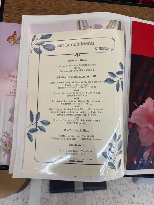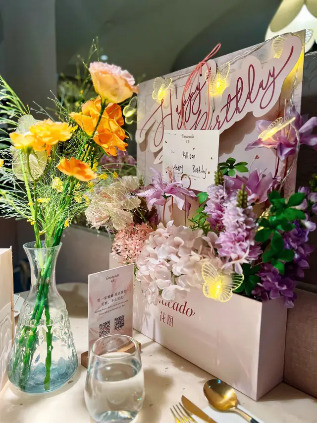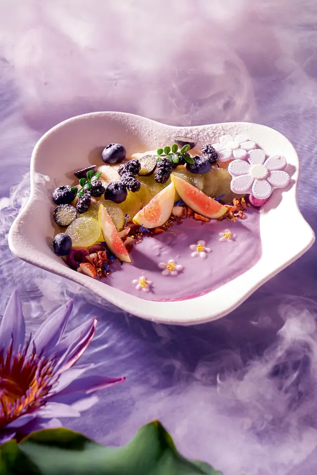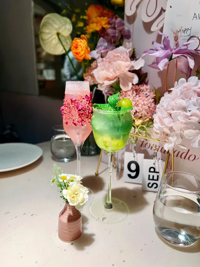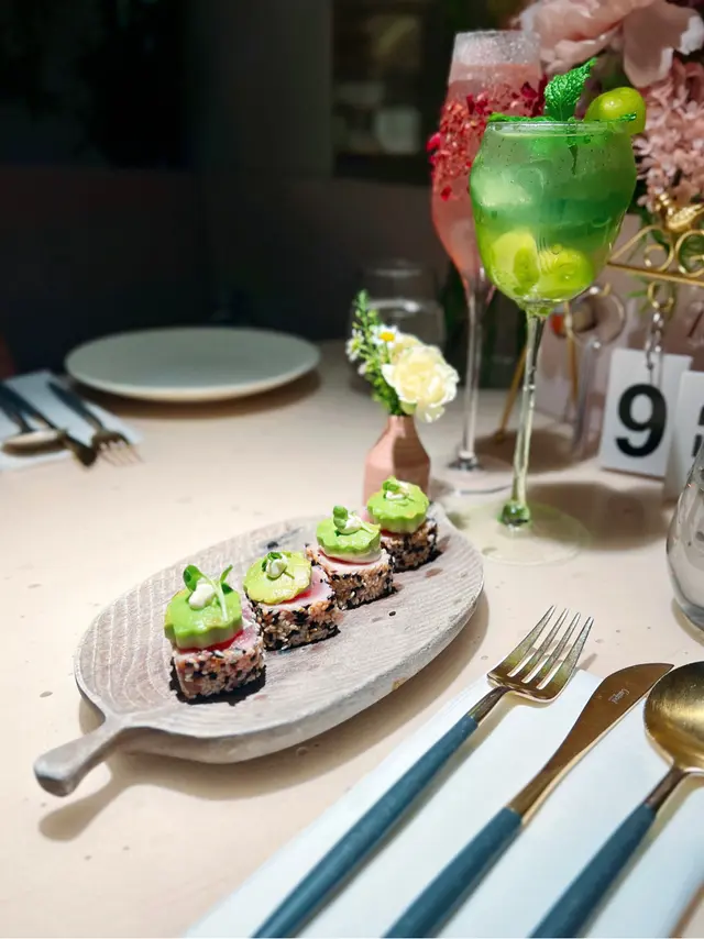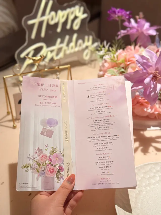 銅鑼灣嘅花花世界「花廚」系一間人見人愛,花見花載嘅靚靚餐廳,由入門口開始已經令人相機好忙碌,黎打卡食飯絕對唔會錯架啦!佢哋近期推出咗「南洋暖嶼限定雙人套餐」,仲會贈送限定花卡+時令花材一枝1份。沙律&前菜(2選1)紅菜頭藜麥沙律(V)或者海陸空高蛋白Taco(AN4和牛眼肉/蝦/雞。我哋揀咗:紅菜頭藜麥沙律,佢色彩繽紛,沙律中夾雜住紅菜頭,用咗藜麥、水蘿蔔、牛油果、車厘茄、沙律菜,口感爽口有嚼頭,沙律醬汁入味又帶有微酸,食落相當開胃。當季精選(2選1)海鮮椰香冬陰功湯或者叻沙煎大蝦菌菇配皮塔餅。我哋揀咗:叻沙煎大蝦菌菇配皮塔餅,蝦肉好彈牙,配合菌菇嘅鮮甜,叻沙醬汁風味濃厚但唔會過辣,搭配酥脆嘅皮塔餅,啖啖都好有層次感。特色主菜有黑松露香草烤三黃雞同埋桂花照燒菲力牛排(200g)。三黃雞外皮烤得好香脆,肉質嫩滑多汁,香草同黑松露嘅香氣完美滲透入雞肉,賣相出色。菲力牛排肉質靚,烤得恰到好處,肉眼Juicy又彈牙,照燒醬帶甜味中和咗牛肉嘅濃郁。主食系海鮮辣味咖喱燴飯,鐵鍋呈上,熱辣辣好吸引,海洋豐富,燴飯濕潤,米飯軟硬適中。甜品(2選1)斑斕醬抹茶雪糕法式吐司或者”荷塘月色”葡萄烏龍凍,我哋揀咗斑斕醬抹茶雪糕法式吐司,法式吐司外層微脆,內裏軟嫩,斑斕醬再加抹茶雪糕絕配,唔會太甜,充滿斑斕香氣。飲品,我哋揀咗藍蝴蝶,色彩由藍變紫,靚到唔捨得飲,飲落清新爽口,味道帶點果香。沙梨果檸檬青蘋果,蘋果綠好吸睛,清新氣息好舒服。…查看更多