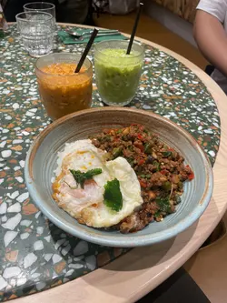 最近喺康城搵到呢間特色泰式小店 Tommy Yummy,由裝潢到味道都好有心思,啲野好食又好睇!😍😍📸 Thai street vibes in the heart of LOHAS Park—Tommy Yummy is a hidden gem serving up bold flavours and serious comfort food. Here’s what I tried:🍛 打拋豬肉煎蛋飯呢個係我心目中嘅comfort food!打拋豬肉炒得夠乾身又夠香,辣度啱啱好,唔會太搶味但又夠刺激。配埋個煎蛋,蛋黃半熟流心,撈埋飯一齊食真係邪惡到不得了~每一啖都好有層次感,食完仲想encore!Minced pork with Thai basil, topped with a crispy fried egg—spicy, savoury, and totally addictive. The yolk blends perfectly with the rice. Comfort food level 💯.🌀 蜆肉炒卷卷粉卷卷粉口感超彈牙,炒得夠鑊氣,蜆肉鮮味十足,微辣好醒胃!Stir-fried rolled rice noodles with fresh clams—chewy, smoky, and packed with umami. A surprising combo that works like magic.🥤 泰式奶茶 + 泰式綠茶奶茶香濃唔會太甜,綠茶清新解膩,perfect match!Thai milk tea was rich and smooth without being overly sweet, while the green tea was refreshing and balanced out the meal perfectly. Both were generously sized too!💬 店內環境好有泰國街頭風情,牆上仲有泰文裝飾,打卡一流~The decor channels Bangkok street vibes—neon signs, Thai lettering, and cozy seating. A great spot to chill and snap a few pics.📝 Tommy Yummy 絕對值得專程嚟試!食物有水準,價錢合理,環境又舒服~下次要試埋佢哋嘅串燒拼盤同冬蔭功湯!🏰Tommy Yummy📍 康城 The LOHAS…查看更多
