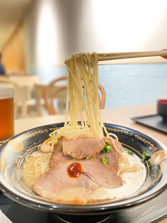 位於太古美食廣場的日式拉麵店,旁邊還有其他美食站可供客人自由選擇。這間小店主要供應豚骨湯底拉麵,還有咖喱飯,間中也與推出期間限定款式。下單後,在附近找個位置坐下,當食物準備好,手上的提示器就會震動。豚骨拉麵 最基本的原味拉麵,有叉燒同半熟蛋。根據口味,自行配搭調味,有胡椒、大蒜、芝麻粉、超辣高菜。另外可以額外加點配料,如半熟蛋、叉燒、蔥花等等。半熟蛋溏心狀態,恰好。高菜鹹香辣,越吃越辣越過癮。叉燒豚骨拉麵一共有三片叉燒,湯頭濃稠醇厚, 帶點油脂。配搭細直麵條,幼身掛湯,而且蠻有口感。叉燒薄切,肥瘦均勻,口感柔嫩。另外飲料點了一杯烏龍茶,解渴解膩。…查看更多