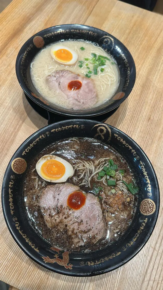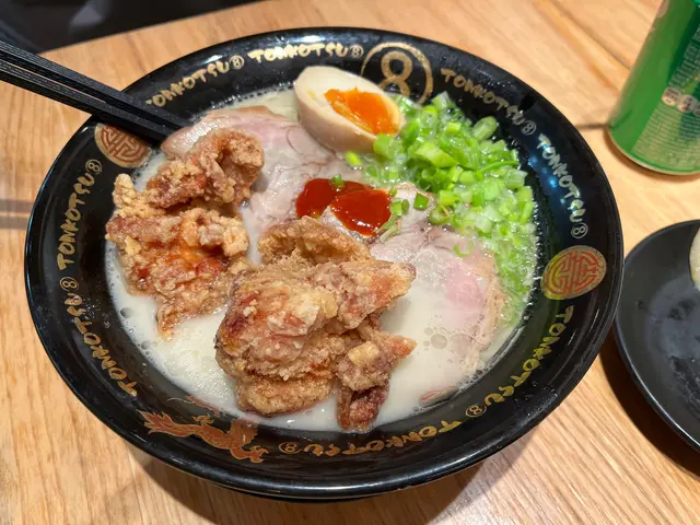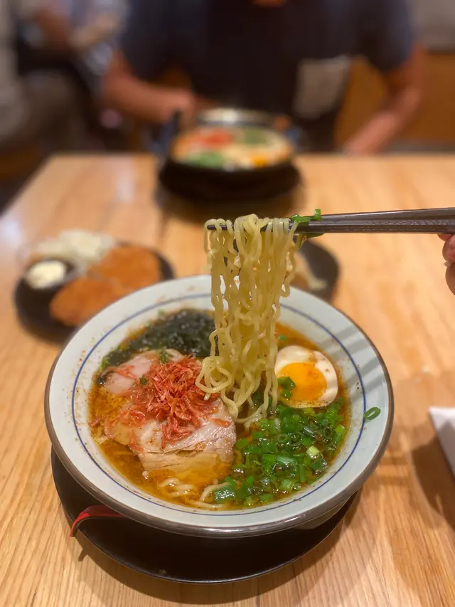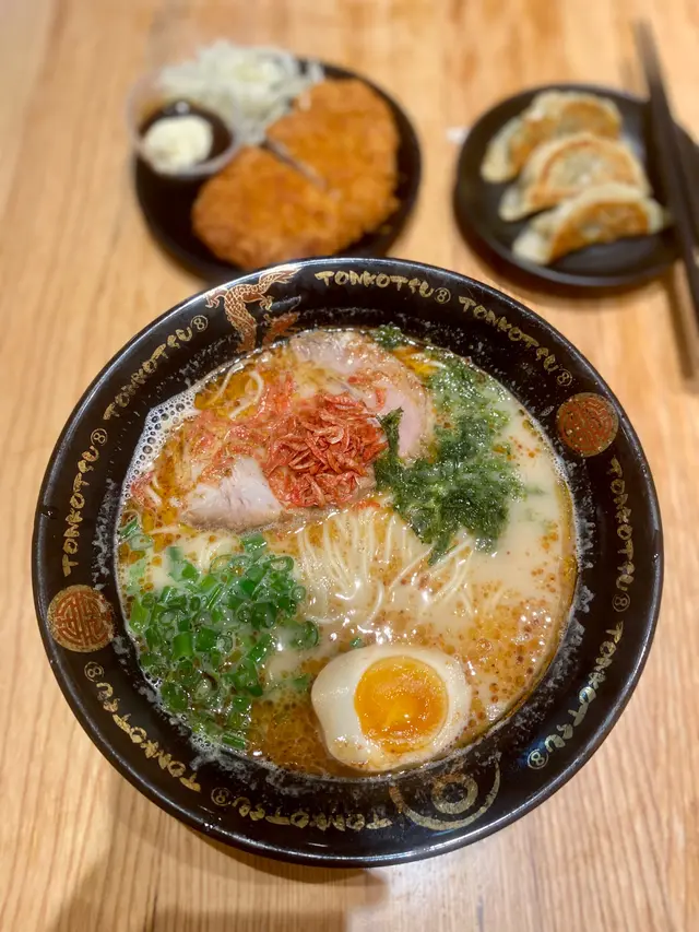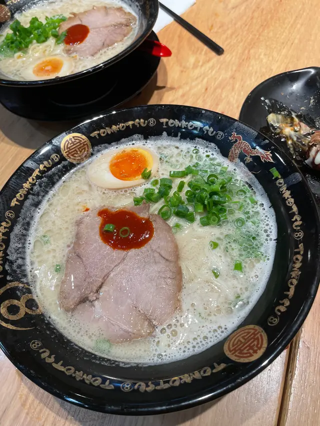這次品嚐的兩款豚骨叉燒拉麵各有特色。豚骨叉燒拉麵(豚骨湯底)豚骨湯底濃郁,經過長時間熬煮,釋放出豬骨的香味,湯汁滑潤濃厚。拉麵吸收了湯底的精華,口感順滑。配料中的叉燒有嚼口,雖然味道可以,但如果肉質能再提升至更嫩滑,會更為理想。半隻溫泉蛋煮得恰到好處,蛋黃流心,增加了整體的風味層次。豚骨叉燒拉麵(黑麻油湯底)相比傳統豚骨湯底,黑麻油湯底帶來更深層次的香氣。黑麻油的加入讓湯底多了一絲獨特的焦香味,拉麵同樣保持良好的彈性與口感。配套餐有餃子,外皮金黃酥脆,份量較少隻。另加送飲品,平衡了濃郁的湯麵。…查看更多