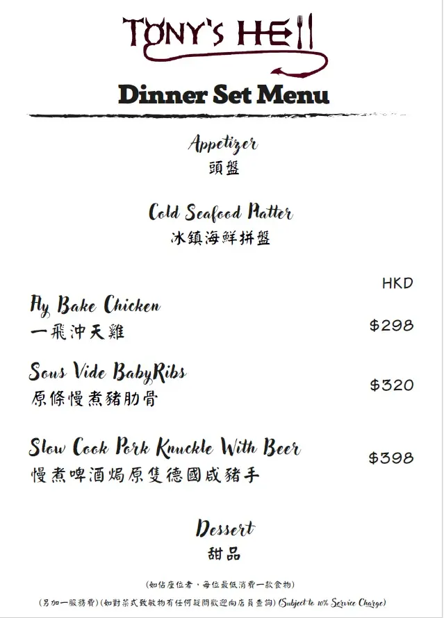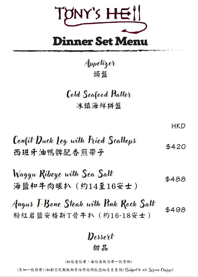 唔好意思,我有幾個字要講嘅!喺Tonys Hell嘅體驗真係可以用"掂晒"嚟形容!首先,紅菜頭蘋果湯嘅顏色同滋味都好出色,得個味道微微甜,又有紅菜頭嘅深厚後味,蘋果邊陣清新感真係好清怡!🍎而啲地獄雞翼真係辣到飛起!但係厲害嘅係,辣度強勁之餘,都可以食出雞翼本身嘅鮮味!我啲朋友最後都搶埋啲骨頭來嗌勁!主菜嘅冬陰功墨魚汁意粉,唔止香口,更加係又得意又好食!個墨魚汁令到啲麵條順滑得滯,啲冬陰功香味倍升,簡直係perfect match!最後我哋當然唔少得呢度嘅招牌豬手,佢個南瓜汁真係玩到豬手都上咗個新層次,咬落去肉質彈牙,皮酥脆得黎唔會太油,真係一絕!呢度啲食物都食到見真章,而且員工都好貼心,預咗個生日驚喜,真係太正了!下次再嚟一定要試吓佢哋嘅牛扒,今次嚟晒都冇得食好遺憾㗎~總之,食得開心,心情都好,掂晒!👍🎉😋查看更多