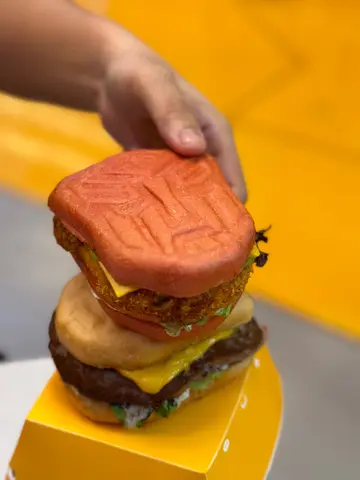 蟹肉牛油果漢堡很特別,很多蟹肉和牛油果,也很喜歡面包的口感,飽皮也是帶點脆皮,外脆內軟。安格斯牛肉漢堡超好食,勁多肉汁,啲肉汁係一邊食一邊滴落嚟,兩款漢堡都明顯係即叫即整,物超所值。Pizza也是焗得非常香脆,鋪了滿滿的芝士和海鮮。叫了兩杯大汽水,店員話無哂大杯,轉了4個中杯裝得滿滿的,真是超級大方,差啲飲唔哂。服務也很好,有送餐服務,餐廳位置寬敞,裝修是變型金剛飛船主題,打卡也不錯的,環境乾淨,連洗手間都超級乾淨。