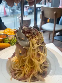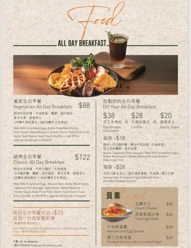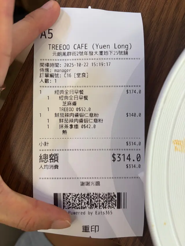 初訪元朗呢間咖啡小店,應該開咗未夠一年空間不多,簡簡單單,閒日時段早上去,見到都八成滿😀到我地埋單就大家都食完餐牌食物選項簡單,輕食有4款all day breakfast(DIY / Classic / Super / Vegetarian)可選,2款意粉,5款甜品。🩶Classic All Day Breakfast 有明治牛乳炒蛋、牛油啡菇、火腿、日式豬肉腸、三角薯餅、茄汁焗豆、蒜香多士同沙律,色彩繽紛+澎湃感OKK~ Super ADB分別在於火腿變成煙肉,另外多咗煙三文魚同水果。蒜香多士可以轉做croffle,讚👏🏻👏🏻 Croffle總是人見人愛,去親咖啡店都永遠受歡迎🙂↕️入口酥脆又重牛油香,好食~ 🩶卡邦尼意粉掛滿蛋汁入味,煙腩肉份量好多~🩶Iced Latte順口,偏nutty,我OK~有啲特色咖啡如pineapple/ orange/ lemon/ coconut Americano、strawberry latte等☝🏻走咗之後先發現原來佢地嘅招牌係Treeoo(開心果朱古力脆脆咖啡)、手沖同牛角包🥹下次~🩶Chocolate Milk香濃嘅朱古力味,入口順滑,甜度適中…查看更多