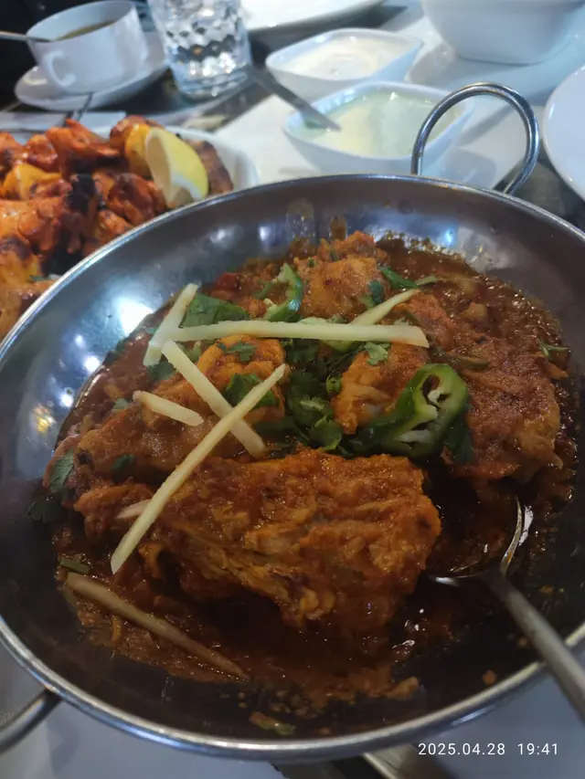 首次品嚐巴基斯坦菜,整體體驗令人印象深刻。食物各具特色,展現出巴基斯坦菜式的多樣性與香料運用的深厚功力。如果追求卓越的服務,便慎入;始終南亞文化是比較散漫。🥘 慢煮羊膝:經長時間烹調,味道濃郁,令人回味無窮。此道菜式充分展現出慢煮技術的精妙,亦是整頓晚餐中最為出色的一道。🍅 番茄煮羊:此菜以番茄為主調,與羊肉的濃郁味道互相輝映。香料層次分明,惹味十足,既保留羊肉的原味,令人食慾大增。🍗 燒烤雞塊:外層略為乾身,口感稍嫌鞋口,未能完全展現燒烤的香脆與多汁。🥖 烤餅:外脆內軟,香氣撲鼻,無論配搭羊肉或單獨享用,皆相得益彰。是次烤餅製作水準甚高,為整體用餐體驗錦上添花。✨ 整體而言,是次巴基斯坦菜體驗令人愉快,菜式風味獨特,香料運用恰到好處。雖然燒烤雞塊略有不足,但其他菜式均表現出色,尤其羊膝與烤餅更是令人驚艷。…查看更多