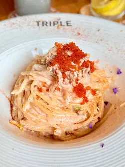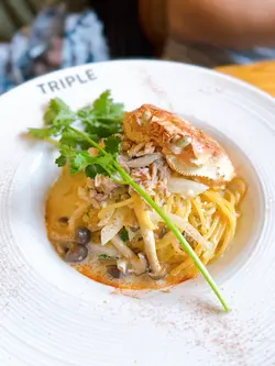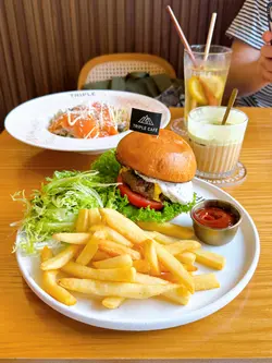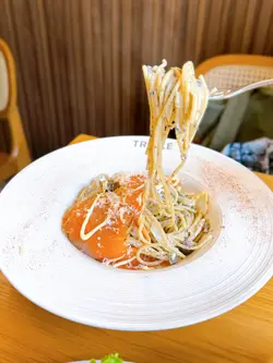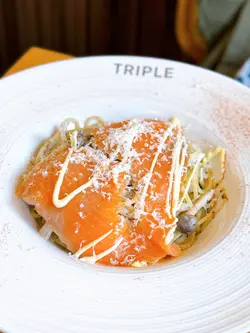🐟煙三文魚黑松露雜菌意粉 $78連餐飲🦀甲羅燒薑蔥蟹肉意粉 $108連餐飲🍔黑松露手打和牛煙肉漢堡配薯條沙律 $108連餐飲和牛煙肉漢堡尤其出色,和牛漢堡扒多汁又有咬口,麵包軟熟,配上惹味的芝士蛋和新鮮爽口的蕃茄、生菜,令人印象深刻;薯條沒特別香脆,口感一般🙂🥧肉桂蘋果撻配雲呢拿雪糕 跟餐+$68一上枱已經充滿玉桂的香氣,撻皮酥脆,配上一片片甜而不膩的蘋果片,加上雲呢拿雪糕冰火交融,非常滋味!伴上黑糖醬更畫龍點睛的感覺,味道層次感豐富🤤飲品🖤黑糖薑母茶 跟餐+$0🍋凍檸檬蜂蜜 跟餐+$3🧀芝士開心果大地 跟餐+$38芝士開心果大地最值得一試,一杯滿足你三個願望,有齊開心果碎、開心果芝士奶蓋和咖啡。開心果和咖啡的味道平衡得很好,而且加上了開心果碎令口感更為豐富😋…查看更多