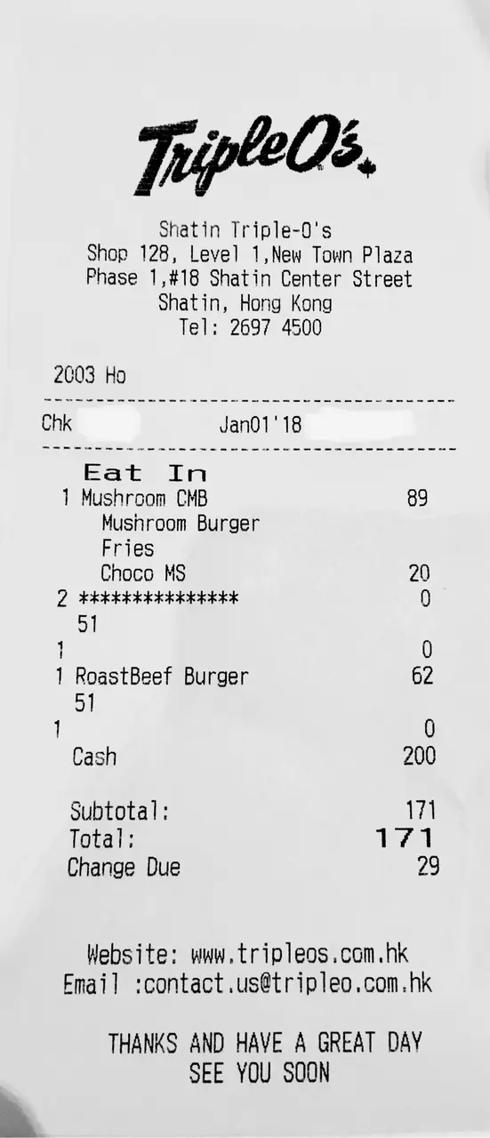 Triple O's by White Spot (沙田) 網址: https://s.openrice.com/QrbS00r4000 地址: 香港沙田沙田正街18號新城市廣場1期1樓128號舖 電話: +852 26974500