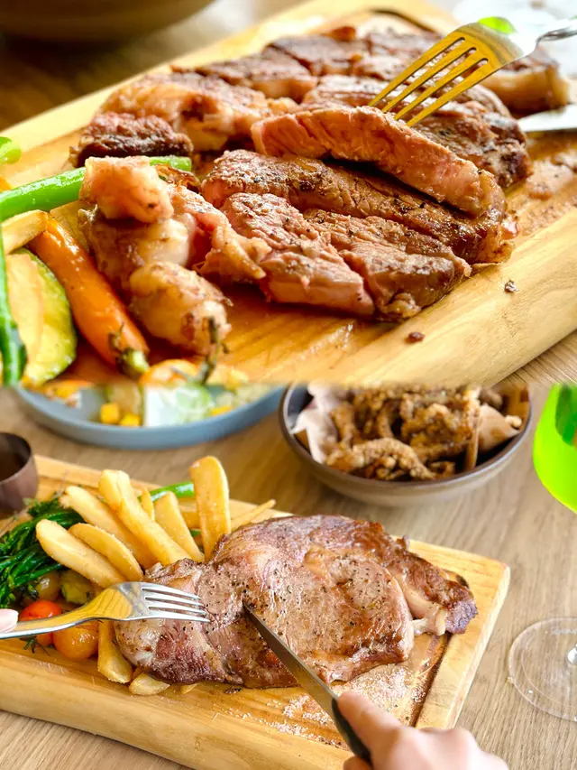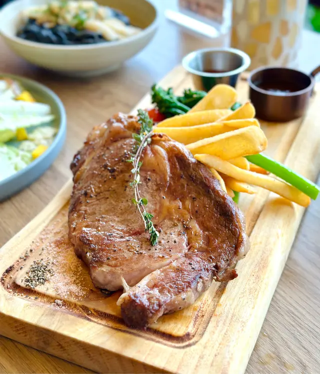 炭燒美國頂級香草牛油西冷牛扒配烤薯仔