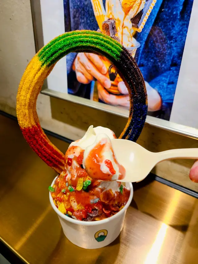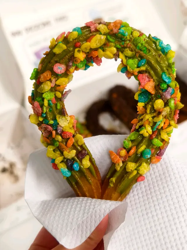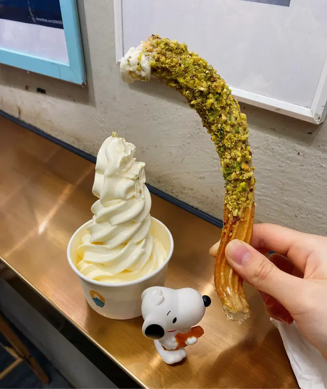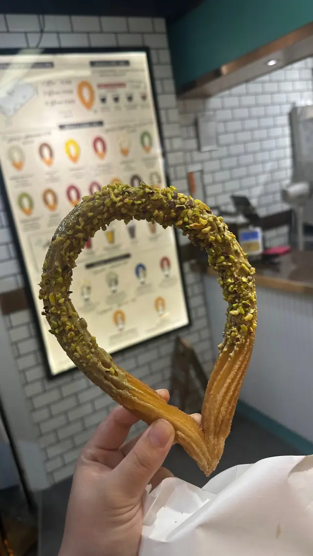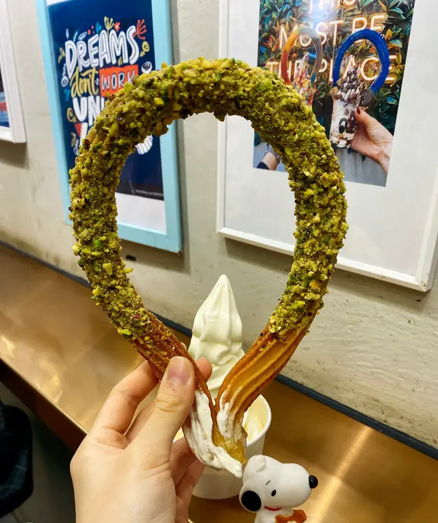 I was craving some snacks, noticed this shop having a long queue. Didn’t know what the hype was about until I tried for myself. Tried 4 different flavors, the pistachio crunch stood out. Damn it was amazing. Fresh crispy churro, dipped in pistachio cream with crumbs. Truly worth the wait. Marshmallow one was quite good too. Definitely would revisit the shop if I had the chance. Kudos to the shop 💯…查看更多