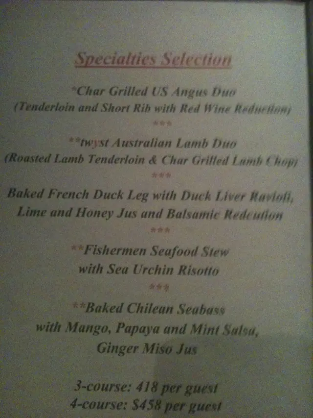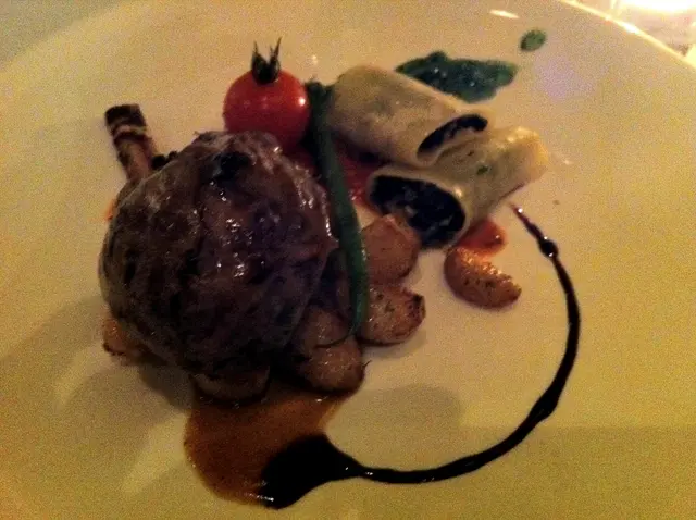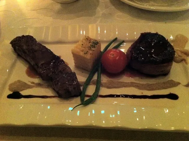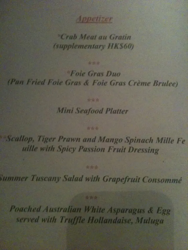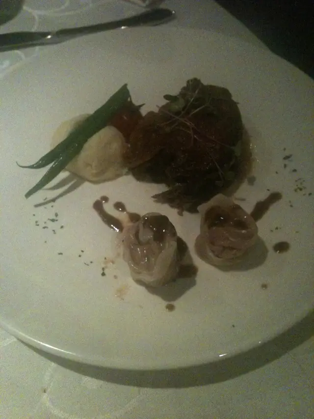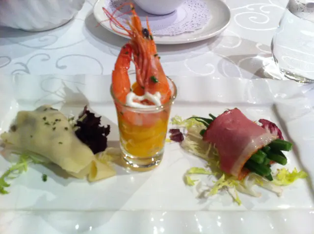 Came at 1230 for lunch. quite a popular place but not too crowded. We chose the set lunch.My wife had the anitpasti platter, snail chowder and kubota pork.I had the waldorf salad, snail chowder, and steak.Antipasti - The soft shell crab with tartar sauce and the omelete were good. The melon with parma ham was not bad but ordinary. The snail chowder was tasty. Although creamy and quite a bit heavy, the snail taste came through.The pork was nicely cooked. The bread crumbs and dried fruit on top provided a nice contrast. The pork itself was well seasoned, although the thickness made the inside a bit dry and tough. the waldorf salad was watery and quite plain. The steak I asked to be med well and it was. Half the steak was tender but the other half was chewy. I don't remember what kind of beef or where from.The coffee mouse was similar to an ordinary pudding you get at the grocery. the small choco cake or brownie was not bad but I didn't like it. But my wife did.…查看更多