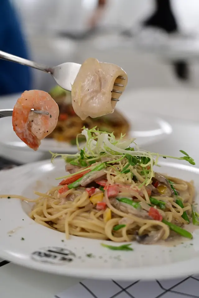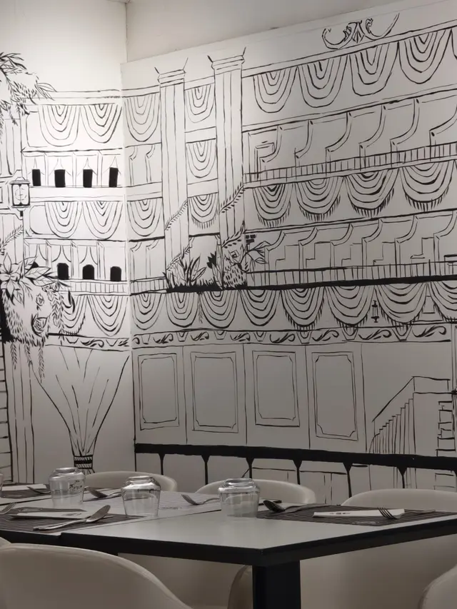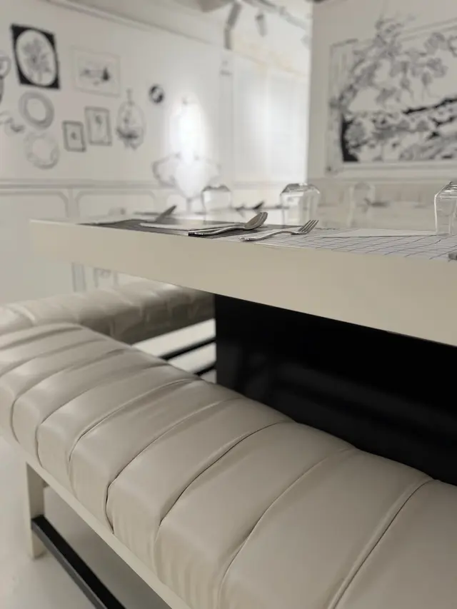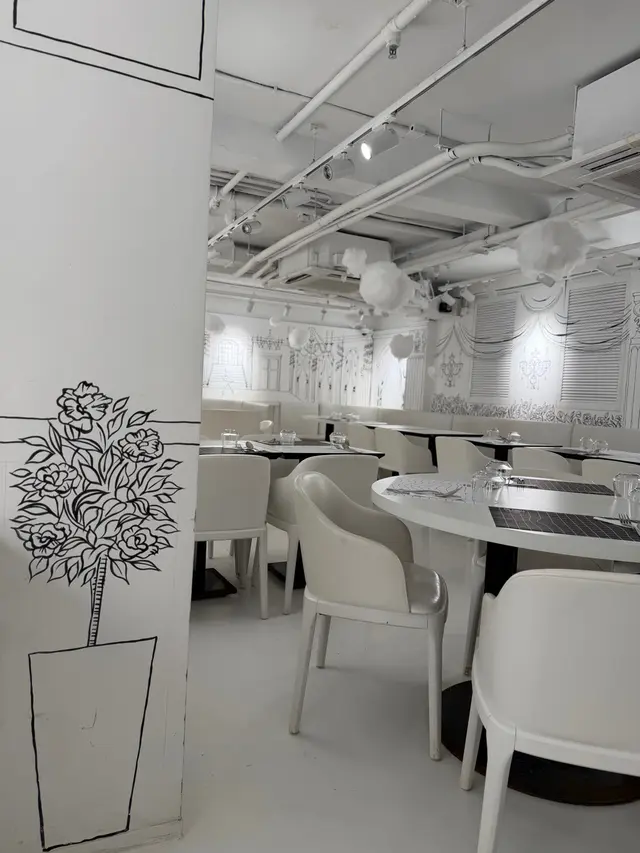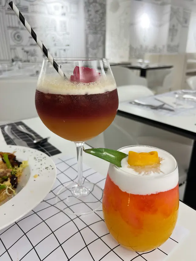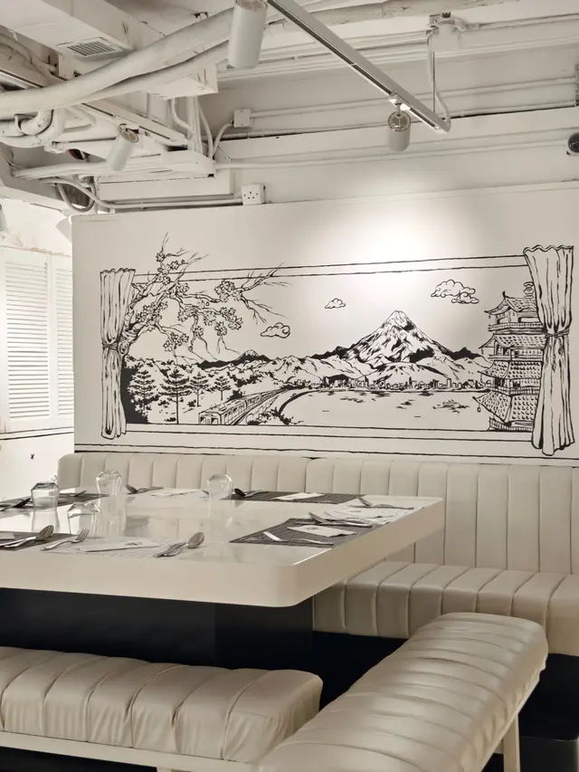 第一次嚟呢間黑白得咁純粹嘅餐廳,如果唔係朋友介紹,都唔知灣仔有一間人氣爆燈嘅樓上鋪Cafe,平日去都有八成滿🫣走過長長嘅樓梯,就會到達餐廳,餐廳呈呂字形,在餐廳走過通道進入神秘嘅空間。小食其實有唔少嘅選擇,保守啲就揀咗「蜜汁焗雞中翼 」中規中矩,是一道唔錯嘅開胃菜!😝如果未食就一定會懷疑佢呢張Menu-「港式情懷」🤔啲菜名加埋好似唔係太match咁🥸「大澳蝦醬魷魚筒鮮鳳尾蝦炒意粉」未食之前就諗緊真係會match嘅咩?大澳蝦醬平時應該用嚟炒通菜,有印象都知道佢鹹鹹地,從來冇諗過嘅嘢,原來同炒意粉有幾match!「紅燒蜜汁豬腩肉片五香肉丁燴意大利飯」淨係個名都水蛇春咁長😝唔知大家有冇食過五香肉丁炒飯,五香肉丁燴意大利飯就有呢種感覺,不過個味道就冇炒飯咁鹹,反而用嚟燴飯幾有特色,又係一個估唔到咁match嘅組合!紅燒蜜汁豬腩肉片,我會形容佢好大塊,蜜汁都好香濃🥸其實兩個主食都幾飽下,二姑媽話見到「富士芝櫻祭-丸久小山園抹茶 Tiramisu 」=Lava🌋okok 明嘅明嘅,即刻安排上😏丸久小山園抹茶Tiramisu,個芝士好滑,又唔會話太膩,反而嘅欣賞佢嘅火山灰,用咗玫瑰花磨碎+威化餅碎,扮火山灰,一嚟個意境到,二來係match埋Tiramisu 一齊真係幾好食😛我就比較偏愛「MANGO POMELD SAGO」,顏色好靚,有層次,係冬天飲沙冰凍咗少少🥶✦ 蜜汁焗雞中翼 $88✦ 大澳蝦醬魷魚筒鮮鳳尾蝦炒意粉 $158✦ 紅燒蜜汁豬腩肉片五香肉丁燴意大利飯 $168✦ 富士芝櫻祭-丸久小山園抹茶 Tiramisu $118✦ VIRGIN PEACH MOJITO $68✦ MANGO POMELD SAGO $68…查看更多