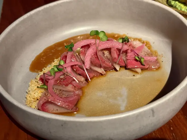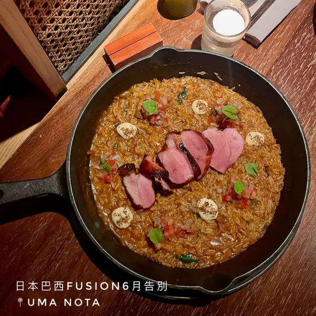 You wouldn't want to miss your LAST opportunity to visit this restaurant! Being Hong Kong’s first Brazilian-Japanese Restaurant & Bar, Uma Nota would be closing down on 21 June 2025. 👋🏻 All of the dishes were so good and portions of the main dishes were surprisingly large! ♥️♥️1️⃣ Dadihnos De Tapioca $78Brazilian tapioca and cheese dice with sweet chili sauce. I find Brazilian cuisine really intriguing - these little dices remind me of tapioca puddings with hints of cheese. Never tried something comparable before. 🇧🇷😱2️⃣ Hamachi Ceviche $188Wasabi tiger milk avocado cream, tempura flakes, tobiko. The sauce was impeccable and it was so fresh! 🎏3️⃣ Amazonian Duck Rice $218Smoked duck breast, tucupi rice, sansho pepper mayonnaise, vinaigrette. Huge pan of rice which serves two. More of a risotto rather than a paella. The rice was so creamy and it has fully absorbed the flavours of the duck. Some parts of the duck was slightly burnt to give it a stronger aroma as well. 🥘…Read More