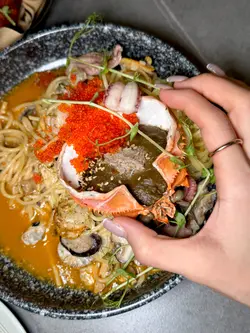 星期六午市時間黎到umi cafe現場食客滿座,幸好有預約座位😎水泥風的牆面配上藝術飾品,滲有點點悠閒氛圍🌊配上窗外180度維港海景,嘆住海景享受美食,舒服愜意🍱蒲燒鰻魚玉子燒意大利飯 $158蒲燒鰻魚肉質厚重、份量十足💪🏻表面燒得焦香,滿滿燒汁風味,配以紫菜香味點綴玉子燒口感實在而鬆軟,味道微甜,搭配鰻魚滋味😋意大利飯滲出陣陣木魚與忌廉香味硬身意大利飯搭上忌廉軟滑口感,味道濃郁飯身比傳統意大利飯更為軟淋,更適合香港人口味❤️🍝赤鬼辣芝士溫泉蛋卡邦尼意粉 $138充滿香辣風味的卡邦尼意粉🌶️在辣味之中帶有麻辣與蒜香,好味到令人上癮蛋液濕潤了意粉,拌上香菇與煙肉,味道滿足🍵宇治金時班戟最頂的抹茶大福包有紅豆餡中層以紅豆雪糕及抹茶蛋糕堆疊🍦最底是軟綿的班戟伴碟灑有粒粒脆脆,口感十足淋上味道濃厚的抹茶醬,味道甘香微苦整體充滿宇治風味,是一道令人驚喜的日式甜品☕提拉米蘇咖啡在咖啡杯中置有一塊Tiramisu,賣相精緻Tiramisu口感綿密甜美,沾有咖啡香味配上底部醇香咖啡,既是飲品亦是甜點😍整體而言,umi cafe菜式創新而美味配上維港美景,無論日景夜景同樣令人享受,值得推薦👍🏻…Read More