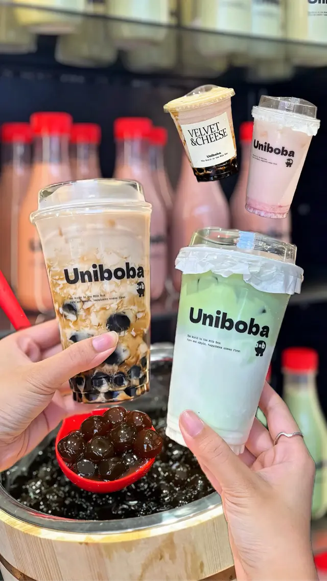 popular boba MILK @uniboba.hk has arrived in Hong Kong ‼️ made with premium fresh milk - pure and creamy🥛 must try viral “giant boba” 🟤 oversized bouncy brown sugar amber jelly 🧋and explore velvety cheese, frosty milk, and more 🧀 人氣珍珠牛奶 @uniboba.hk 登陸香港‼️ 嚴選優質鮮奶 香濃幼滑🥛 必試爆紅 「巨無霸黑糖琥珀丸」 🧋 超巨啫喱 彈滑柔嫩 🟤 還有鹹法酪、乾酪及冰奶系列 🧀 🧋巨無霸黑糖琥珀丸 boba monster HKD$24爆紅人氣 巨型珍珠 彈滑柔嫩黑糖珍珠 煙韌焦甜 奶香豐富💚 開心果牛乳咸芝士 HKD$28pistachio cheese storm芝士牛乳 堅果香氣 厚滑濃郁 🍂 半熟布朗普洱茶丸 HKD$24cheese veil pu’er boba茶香幼滑 奶蓋細膩 珍珠煙韌🍑 莉莉蜜桃冰奶 HKD$24jasmine peach frosty milk 夏日新品 粒粒果肉 清甜奶滑🍵 抹茶牛乳 matcha milk HKD$16牛乳香濃 抹茶回甘 柔和順滑📍 旺角登打士街43P-43S號鴻輝大廈地下11A舖 (various locations)🇭🇰*…查看更多