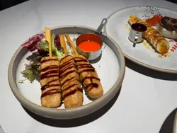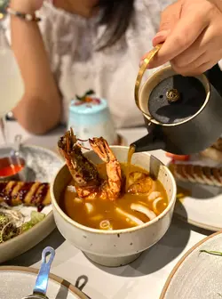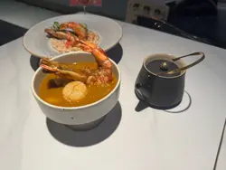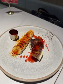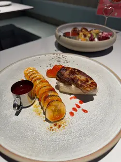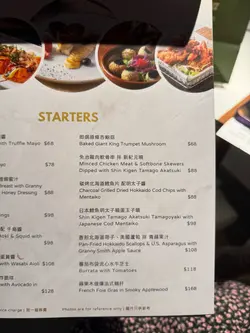 首先迎接我的是蘋果木煙燻法式鵝肝配炙燒焦糖香蕉。煙燻的香氣彷彿撲鼻而來,鵝肝的醇厚口感與焦糖香蕉的甜美形成了完美的對比,簡直是天作之合!每一口都讓我不禁想要再來一塊,滿足感瞬間充盈。接下來是免治雞肉軟骨串,拌新紀元 曉。串燒外焦內嫩,雞肉的鮮美與軟骨的Q彈相得益彰,搭配滑溜溜的雞蛋,讓人忍不住多點幾串。這道菜真是讓人驚喜不斷,幸福感直線上升!然後是北海道帶子、虎蝦、海鮮配茶壺龍蝦湯。當服務生端上這道菜時,我幾乎無法抵擋它的誘惑。湯底濃郁,海鮮的新鮮味道透過每一口湯流露出來,帶子和虎蝦的鮮甜彷彿在舌尖跳舞,讓人陶醉其中。再來的虎蝦、櫻花蝦明太子意粉,則是一道充滿日本風味的創意菜。意粉的彈性與明太子的醇厚,結合了虎蝦和櫻花蝦的鮮美,這道菜令人垂涎欲滴,恨不得一口氣吃完一整盤!在飲品方面,京都柚子酒 - Takara 是我當天的亮點。清新的柚子味配合著微微的甜味,恰到好處,令人感到清新舒爽,特別適合這個季節。最後,我以一杯抹茶維也納雪山特飲作結,濃郁的抹茶味在口中融化,搭配著奶泡,簡直是完美的甜點。當然,怎能錯過開心果意式奶凍呢?用馬天尼杯盛載的它,讓人眼前一亮。奶凍的滑嫩口感與開心果的香氣交融,完美的收尾,讓整頓晚餐劃上完美的句號。這一餐不僅讓我的味蕾得到了極大的享受,更是一次愉悅的心靈旅行。每一道菜都像是一件藝術品,讓人不禁讚嘆。期待下次再來,繼續這場味覺的冒險!…查看更多