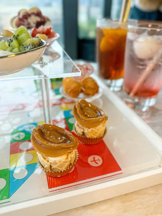 尖沙咀珀薈酒店19樓嘅Uptop Bistro and Bar由即日起推出「飛行甜悅」主題下午茶☕️餐廳以經典飛行棋盤作為佈景,配上十款包括飛機、飛行棋等造型嘅精緻點心,可以同朋友一邊品嘗美食,一邊玩飛行棋,都真係幾搞笑🤣🤣‼️依家電話/OpenRice都有預訂優惠🤩平日半價😆星期六日都有85折㗎🩷🌟「飛行甜悅」下午茶✈️ $408/$448 (2ppl)✨鹹點🥢原隻鮑魚忌廉撻🥢青瓜蟹柳沙律🥢薯絲炸蝦卷🥢三文魚慕絲多士🥢脆旋風薯棒✨甜點 🥢士多啤梨迷你班戟🥢奇異果意大利奶凍🥢熱情果芝士蛋糕🥢幻彩琉璃啫喱糖🥢英式鬆餅配藍莓醬鹹點方面,個人最鍾意鮑魚忌廉撻🙌🏻原隻鮑魚質感彈牙,醬汁配下面嘅忌廉鹹甜交雜幾得意~甜點就鍾意英式鬆餅,口感唔會太乾,配埋藍莓醬就一流🥰✨飲品🥢荔枝梳打 +$32🥢蜜桃果茶 +$32…查看更多