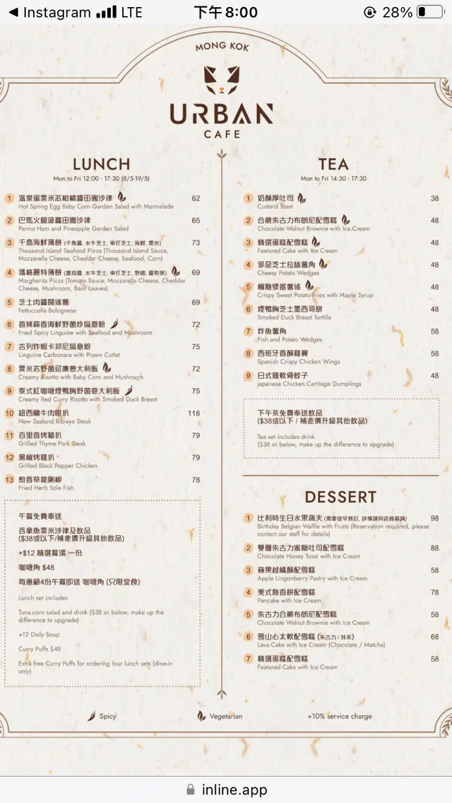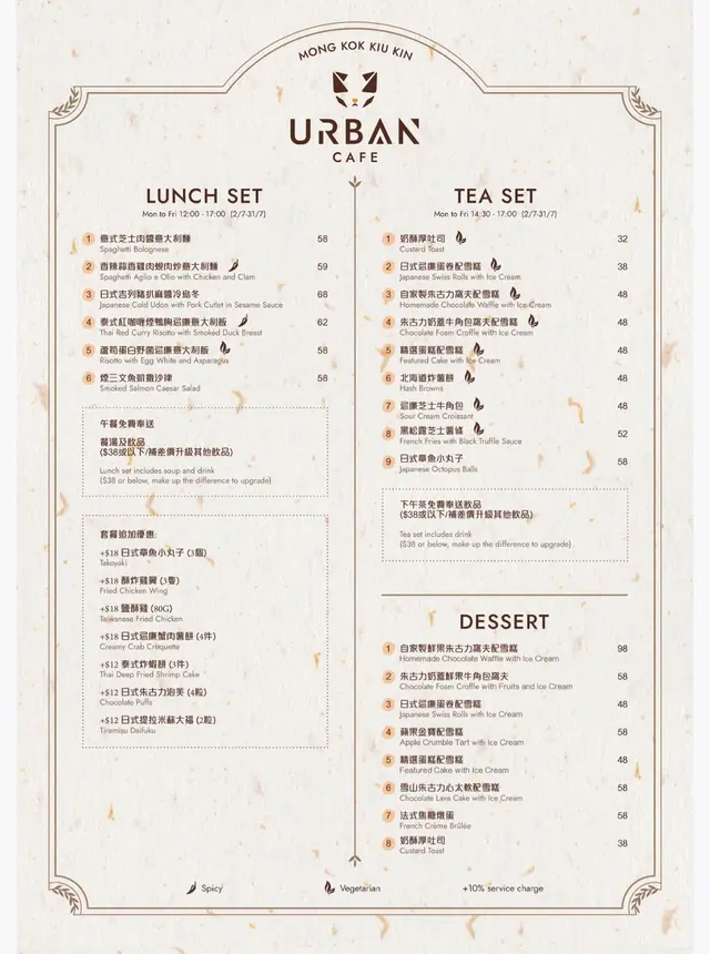 URBAN Cafe (彌敦道) (旺角) 網址: https://s.openrice.com/QrbS0lka800 地址: 香港旺角彌敦道566-568A號僑建大廈2樓 電話: +852 68326990