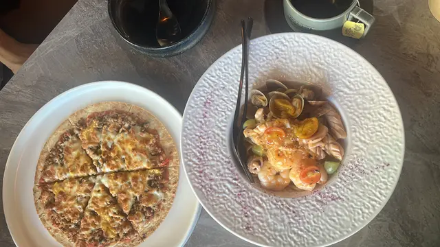 將軍澳URBAN COFFEE|$188凍海鮮意粉+紙皮薄餅!咖啡香救唔返 咖啡豆香飄十里,食物水準跌穿地心,$410買個「相機先食」嘅權利! 🍕 慢煮肉醬薄餅($188)|空洞的碳水陷阱 - 餅邊脆如蘇打餅,餅底卻濕軟似紙皮,刀切下去無聲塌陷 - 肉醬隱形:所謂「慢煮牛肋條肉醬」稀薄如番茄湯,僅零星肉碎黏在芝士上 - 芝士詐騙:拉絲長度不足5cm,莫札瑞拉結塊變橡膠粒 上桌微暖,中心溫度<45°C(疑預製) 🍝 香辣海鮮意粉($198)|雪櫃海鮮 |虎蝦|肉身霉軟,蝦頭膏氧化發黑(疑似翻凍貨) |青口|縮水成拇指蓋,腥味攻鼻需狂擠檸檬 |魷魚|橡膠級韌度,咀嚼似口香糖挑戰 ✅ 辣蒜油香氣合格,但醬汁完全掛不上麵條 ⚠️ 致命傷:上桌冰涼如冷麵,海鮮腥氣加倍釋放 ☕ 咖啡唯一出色|$48凍拿鐵封神- 巴西豆×埃塞俄比亞混豆,堅果香撞花香 - 奶泡綿密如絲綢,溫度冰涼不稀釋 …查看更多