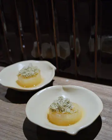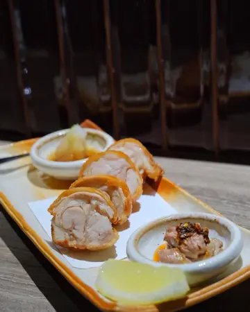 Being a fan of the yakiniku and unagi (freshwater eel) at CWB Nikushou, was interested to try its new sister izakaya.10 seats at counter overlooking the 2 chefs at work. Restaurant was actually relatively big with a bar area and tables at the back; but only the counter seating was utilized that night.Chef explained that we would be served a 15-course set menu; A la carte menu would be available after 8:30pm.2 sets available, priced at either $1200 pp or $800; the difference being the sashimi dish (with general items like shrimp, scallop and buri to be served in the latter menu, as opposed to seasonal items in the former).Decided to go for the former set. Here’s what we had. -Trio of appetizers, comprising Chinese Yam (准山), Okinawa bitter melon and burdock (牛蒡).-Roasted ginkgo Meat of Kobako crab (香箱蟹, in season from Nov to Dec) and Snow crab plus roe and paste. The palm-sized Kobako crab is actually the female version of snow crab, famous for its fragrant roe and paste. Not generally a fan of crabs, but loved the mild taste here, superbly paired with the tangy sweetness of the vinegar.First unagi course: eel in a delicate steamed egg custard topped with plum sauce.Oh, even the chopstick rests were in the shape of grilled unagi.秋刀魚 (this one weighed around 160 grams); although in season, not at its fattiest.Buri in sauce made from Fukuoka Sesame.Stewed daikon topped with dried kombu shreds. Very sweet, no fibers. The person who didn’t eat daikon was awarded a grilled scallop wrapped in seaweed.Tofu supposedly topped with with spicy mapo (麻婆) sauce. Since I didn’t take spicy, I was just given sesame sauce.Second unagi course: eel from Lake Hamana, Shizuoka (靜崗濱名湖). Was too busy chatting to take notice of chef preparing the charcoal for the grill etc. Skin was crisp (not burnt) and grilled with sansho pepper. Loved it. Chicken karaage, supposedly accompanied by a signature textured mala chicken liver mayo. Since I couldn’t take spicy, could only dip the succulent meat enveloped by golden crispy skin in the Grapefruit lime sauce. The others absolutely loved the zingy numbing sauce. Deep-fried glass shrimp from Hokkaido, very sweet and springy.Final unagi course: The classic unagi-don. Already bursting full, so asked chef to give me less rice. Served with miso soup.Dessert: crème brûlée.In summary: palatable evening of skillful cooking, good quality food and excellent service.…Read More