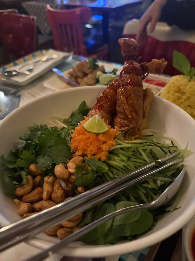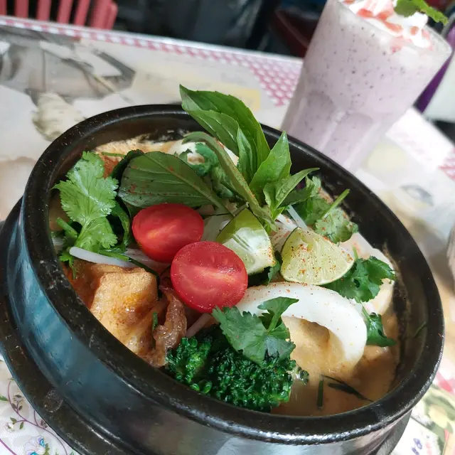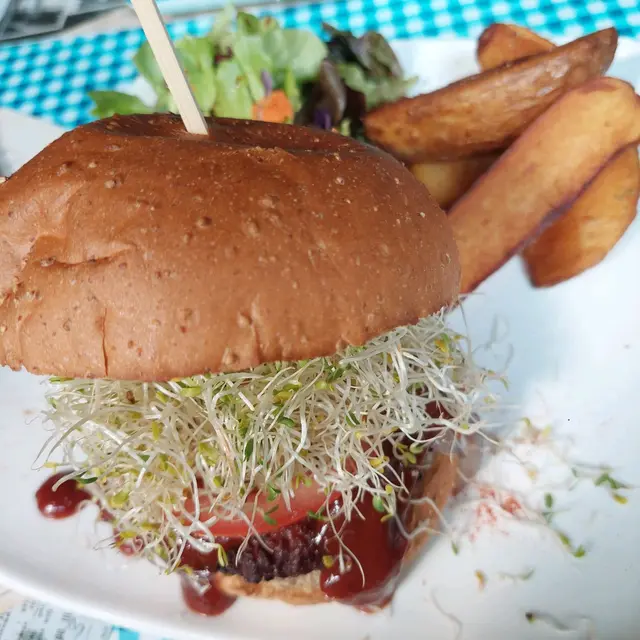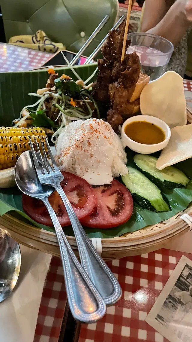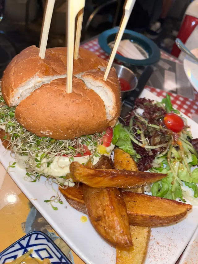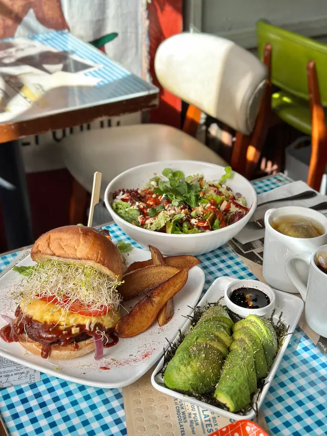 點估到素食餐廳都有咁多打卡位 餐廳以50年代懷舊三藩市做主題🪐鋪面唔大 但感覺好溫馨好有feel 每個角落都佈滿復古擺設同收藏品 氛圍感滿滿⋆⸜♡⸝⋆✧ 𝑇𝑟𝑖𝑝 𝑇𝑜 𝐵𝑎𝑙𝑖 🍌擺盤好靚有心思 足料有齊印尼沙律、炸豆腐、蝦片、串燒、香蕉 仲要有埋椰汁飯 滿足曬所有願望 嗌呢個實冇錯 唔講真係唔記得自己食緊素 食完超滿足(♡‧̫♡)✧ 𝐴𝑣𝑜𝑐𝑎𝑑𝑜 𝑆𝑎𝑙𝑎𝑑 🥑沙律菜配甜紅椒黑醋汁開胃 牛油果同腰果份量慷慨 好耐冇食過咁足料嘅前菜(°○°...)✧ 𝑅𝑎𝑛𝑐ℎ𝟿𝟿 🍔巨人burger大到嚇親.ᐟ.ᐟ麵包軟熟 內餡香脆大豆炸餅配香蒜沙律醬同車打芝士夾埋大量苜蓿芽 加蕃茄同烤洋蔥 配搭心細 食落口感豐富有層次又清新 完全唔膩(՞ ܸ. .ܸ՞)焗薯角意外出色~✧ 𝐿𝑎𝑘𝑠𝑎 𝐶ℎ𝑎 𝐶ℎ𝑎 𝐶ℎ𝑎 🌮星州喇沙花生椰汁咖哩雜菜配印度薄餅 醬汁超香濃 椰香味相對較出 口味偏甜 雜菜(茄子、翠玉瓜、西蘭花同炸豆腐)索曬啲汁好入味 撈飯食一流~…查看更多