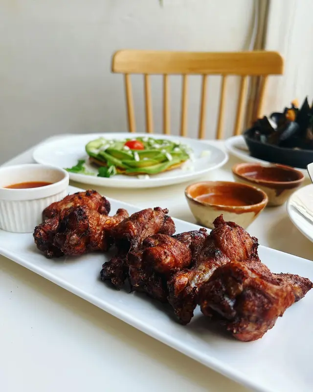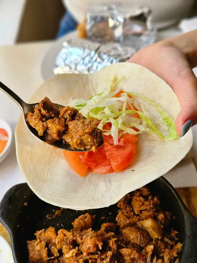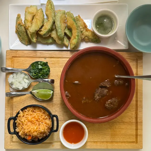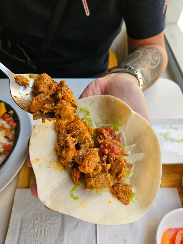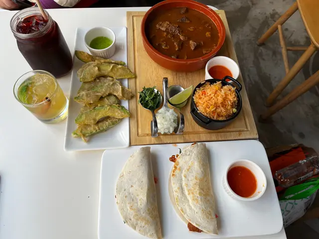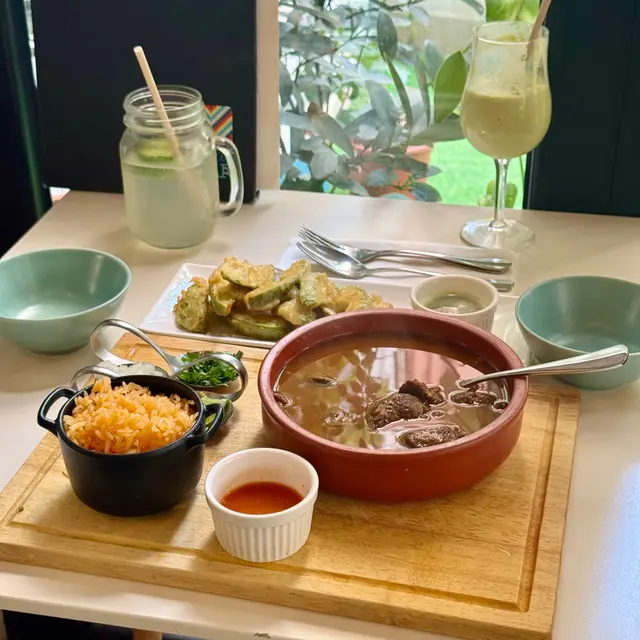 餐廳菜式係香港都算幾特別,係墨西哥菜,我們一般好少食到。位於水街都多人經過。佈置特別,有d得意佈置於天花板好有氣氛俾人打卡。窗邊位光線充足,仲可以望到途人經過。餐廳好chill,好岩放假🏖️休閒飲下野嘆下美食。🥤Non alochol:Jamaica(Healthy Hibiscus tea)Alochol:Tequila honey with cinnamon餐廳兩類型既飲品🥤都有,依兩杯味道都幾好,幾鍾意佢杯Tequila honey加左蜜糖🍯提升甜味,甜甜地減少酒既苦澀味。🥘Birria Beef Stew傳統菜式:用濃郁的牛肉湯慢煮牛。旁邊有蒜粒同芫荽碎,根據自己口味而加。湯頭濃郁,色澤偏深啡色。亦包含一碗細細及已調味嘅飯配牛肉真係好正😊。Avocado Fries酥炸牛油果🥑,估唔到係咁好食!配埋自家青檸汁味道真係好夾!酸酸汁地嘅醬汁配埋鹹香外皮,同埋咬落非常軟屬嘅牛油果,健康同好味兩樣都做到!❤️🔥🌮Quesadilla(Two pieces) with pork墨西哥傳統菜式--卷物。兩塊剛剛好夠二人食。外皮唔會硬身,一咬落去外皮非常香脆,而且入邊嘅豬肉粒加埋蔬菜粒口感非常豐富。…查看更多