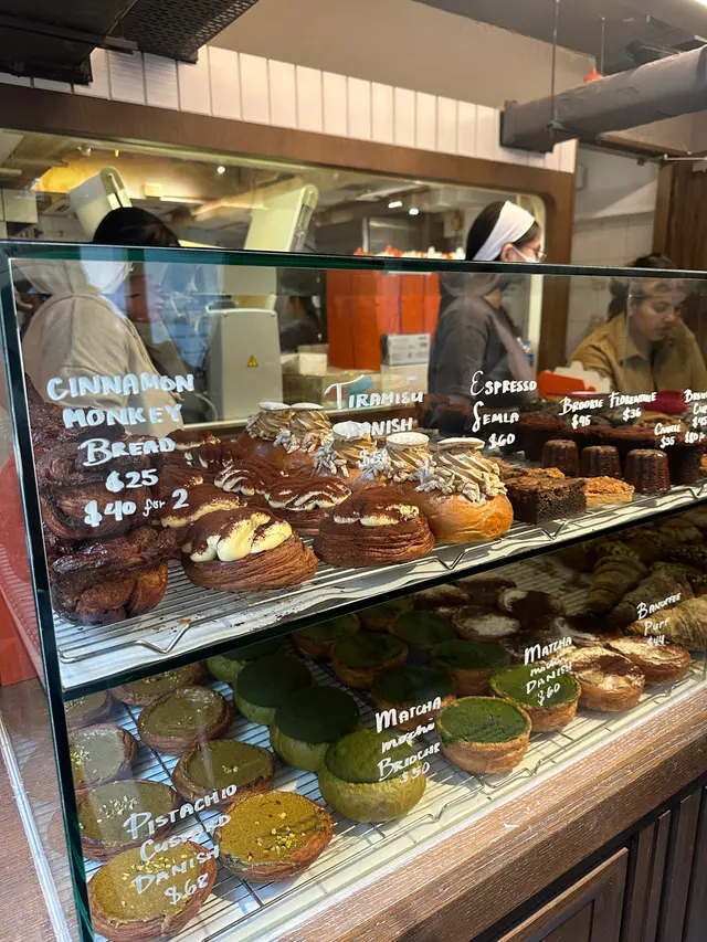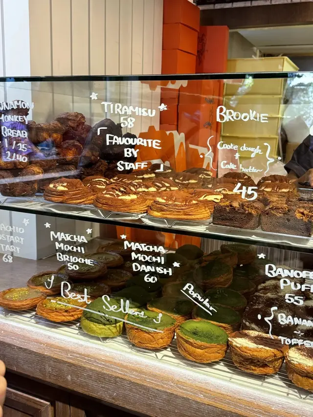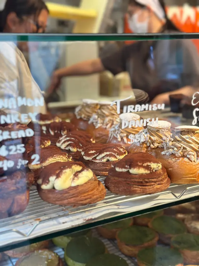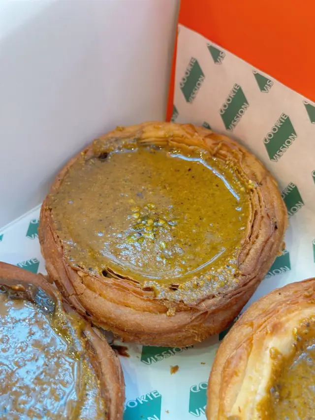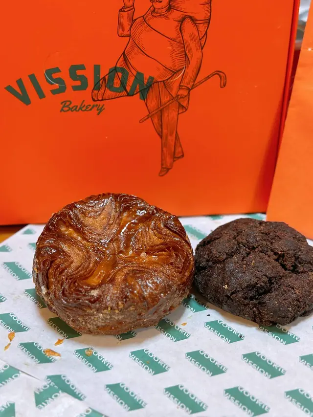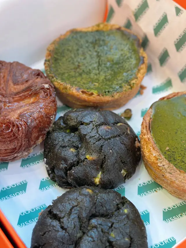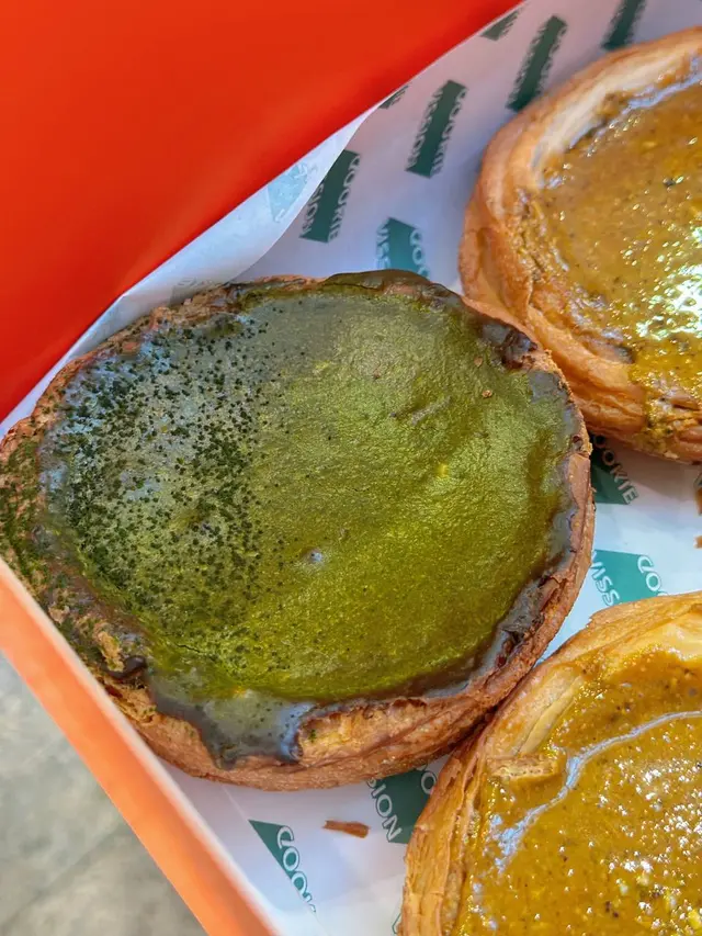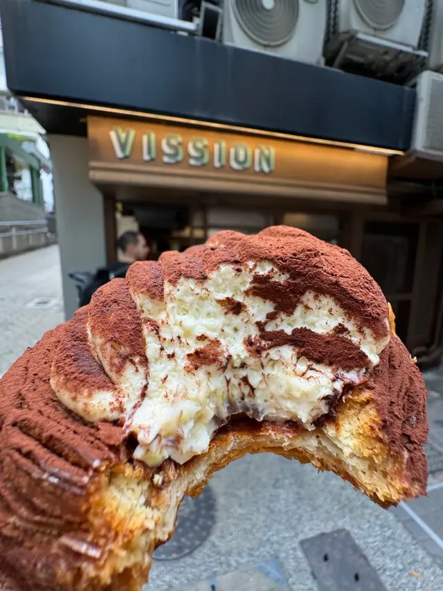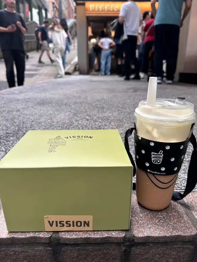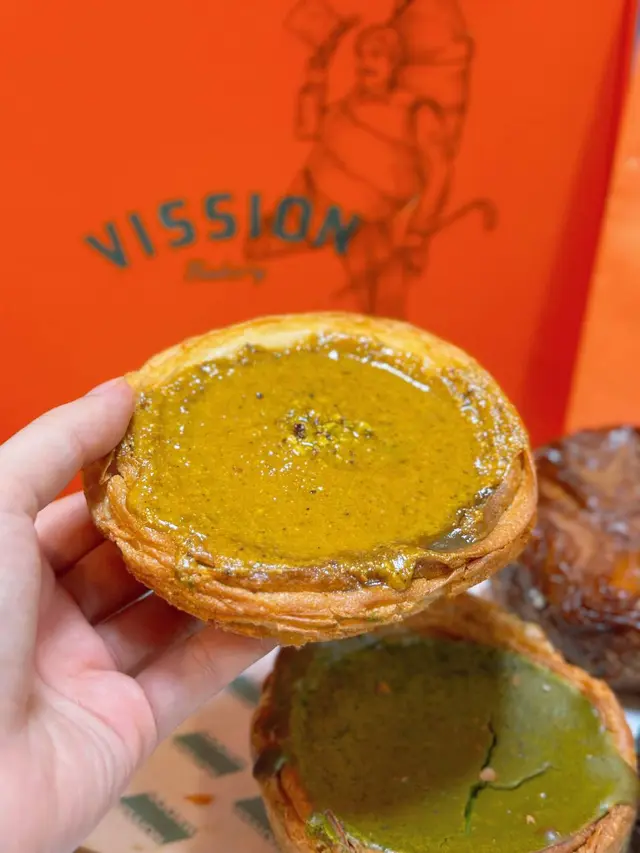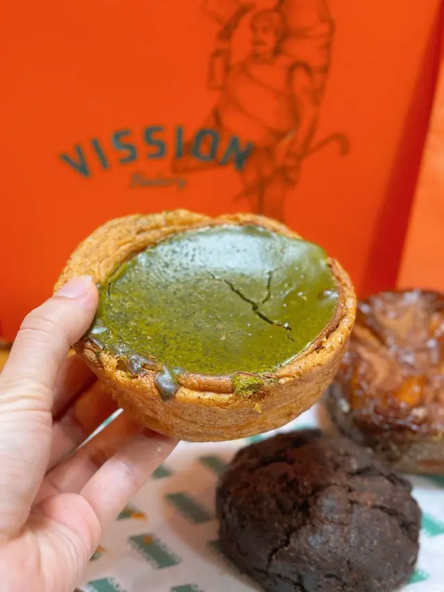 vission由舊年到今年人氣依然 唔只有其他地方遊客最鍾意嘅抹茶酥皮 tiramisu撻 自從新開左隔離嘅vission nine(蛋糕version)之後更多左其他口味嘅撻同蛋糕🗻matcha fuji mountain 抹茶富士山💰85呢個係撻之中唯一幾個我會鍾意嘅(因為唔食酥皮haha) 表面係撒過抹茶粉嘅mascarpone 由於撒粉位置嘅關係 可以見到由白色到綠色嘅漸變 似足富士山咁 入面揭開係抹茶海綿蛋糕 口感類似被浸濕過 所以已經冇乜蛋糕體嘅感覺 再下面一層係抹茶生朱古力(類似royce) 最下面就係撻皮 一開始會覺得好滿足 以內抹茶生朱古力同抹茶蛋糕加抹茶粉三重口感但係都強調左抹茶真係好正 但係越食越漏 同埋撻皮雖然係曲奇但係硬到用佢地比嘅紙叉係唔會篤得碎 而且冇咩香味🍫fudgy chocolate block💰65雖然好想揀brokkie 但呢款好似更特別 表面係朱古力+堅果脆皮 緊接著就係一層薄身嘅朱古力醬(或者可以形容係融化左嘅生朱古力)下面就係厚身嘅朱古力蛋糕 冇話去到brownie咁厚重嘅質地但係都幾密實 食到後面都會偏漏🥐milk tea danish💰55雖然個人唔係好偏好酥皮但係都試左小小 表面層奶茶cream真係有港式奶茶濃厚嘅風味 比較澀味 唔會特別甜 最上面層杏仁脆片就有D太漏 下面嘅danish偏鹹 可能我冇焗返熱 覺得三樣元素唔係好融合整體來講都好味 好值得一試 但係真心希望個size可以細返D而價錢都平D 咁樣唔使食得太辛苦🥺…查看更多