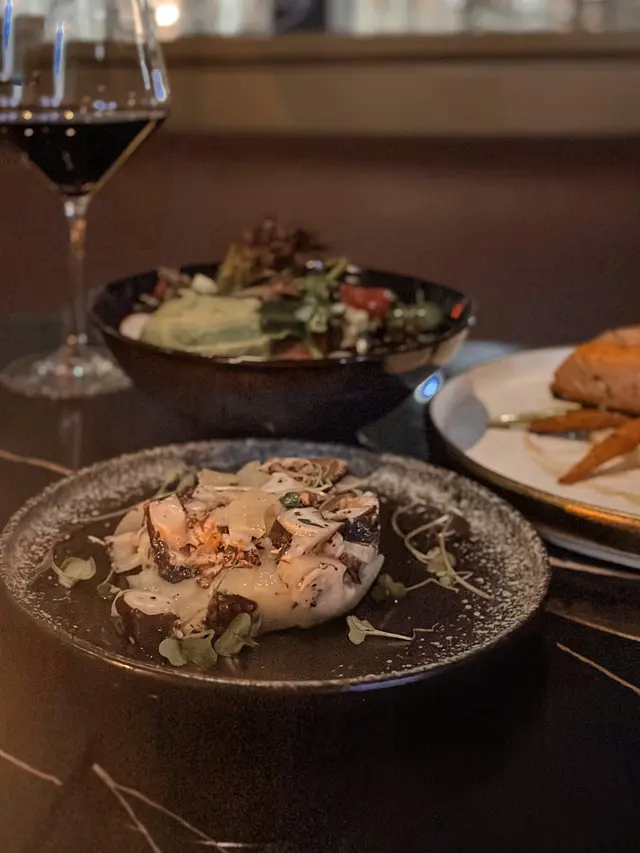 餐廳樓底高,好有空間感,透光開揚大大玻璃窗,望到維港景色,好舒適。從餐廳望出去的景色開揚,餐廳有酒吧,有個舞台仔,仲有個大屏幕,裝修時尚又夠chill,座位闊落舒適,放工或weekend同朋友食飯,又或搞party嘅好地方👍🏻烤紙包忌廉蔬菜 $88呢個presentation都幾特別,蔬菜剛剛好,唔會太腍overcooked,有好多唔同種類嘅蔬菜,忌廉唔會太重味蓋過新鮮蔬菜本身嘅味芝士焗煙肉蘑菇忌廉汁麵包 $98簡簡單單嘅芝士蘑菇,重點係個麵包,睇落好似好實,食落完全唔係,好有麵包香,伴埋芝士煙肉蘑菇,好好味😋香煎豬鞍配芝麻汁及椰菜花 $298豬鞍肥瘦適中,豬味濃,肉又夠軟腍,煎得夠焦香,配芝麻醬都幾特別,豬鞍下面嘅椰菜花,沾滿豬油脂同芝麻汁好好味💯伏特加汁煙三文魚螺絲粉 $158煙三文魚撈埋伏特加汁好濃郁,螺絲粉夠彈牙,三文魚份量唔少,每啖螺絲粉都掛滿三文魚同醬汁💯Sunset Splash $98有益力多,士多啤梨,芒果同蘋果汁,顏色超靚,好refreshing嘅mocktailMango Brûlée $128Vanilla Infused Vodka,芒果Syrup,Citrus同蛋白, Vanilla Vodka幾特別,不妨一試…查看更多