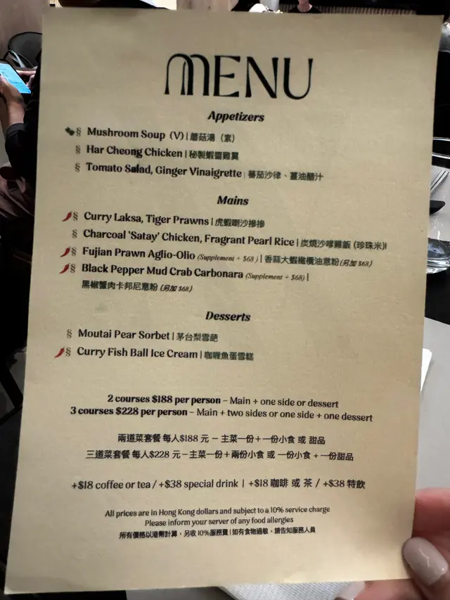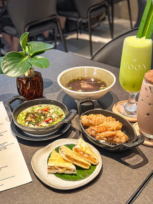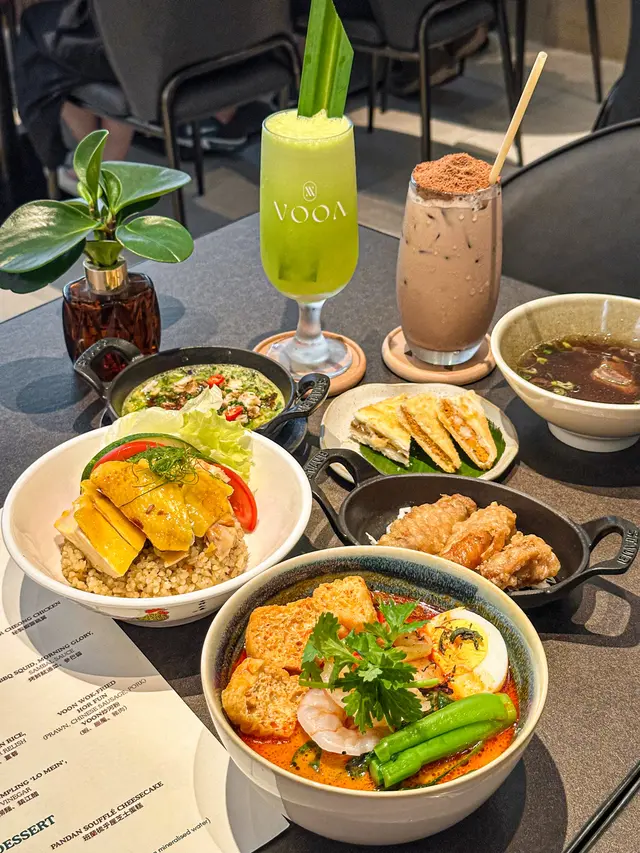 最近在遊客打卡重地旁邊現代新加坡菜 Voon 靜靜地的營業Voon 以摩登時尚的環境跟少量植物打造舒適環境提供各種精緻的 fusion 料理週末 CP 值很高的 HKD$380 4 course 早午餐以更相宜的價錢享受更多不同餐點𓋪「烏打」蝦多士𓋪 秘製蝦醬雞翼前菜有擺盤精緻 外脆內嫩的蝦多士必點的有以秘製蝦醬製作 帶鹹香回甘的炸雞翼兩道前菜雖為鹹點 但都是惹味的涮嘴𓋪 藥膳洋蔥排骨湯𓋪 黑胡椒蟹肉蛋餅與傳統肉骨茶不一樣 排骨湯湯頭清澈帶微微藥膳甘香 入口是蠻清爽的口感在選擇餐點時店員推介了蟹肉蛋餅每口都有鮮甜蟹肉跟黑胡椒小辛香 風味十足𓋪 虎蝦喇沙湯麵𓋪 VOON 炒河粉 喇沙湯麵是油麵和米粉混合的正宗配搭湯底先有濃郁椰奶香氣 後有微微香辣感掛在麵條上 同時感受甜 鹹 辣的豐富層次招牌炒河粉以臘腸 豬肉 蝦作配料惹味醬汁依附著滑溜的河粉上 卻不過於油膩蘸一下辣油更有風味𓋪 斑蘭焦糖燉蛋𓋪 斑蘭梳乎厘芝士蛋糕兩款以斑蘭作主角的甜品各有特色滑嫩的焦糖燉蛋淺淺一層 還是能嚐出濃郁焦香跟斑蘭清香 梳乎厘芝士蛋糕質感輕盈 斑蘭味道也很突出 甜而不膩𓎾 斑蘭青檸特飲𓎾 斑蘭椰子乳酸連甜飲都充滿斑蘭的風情斑蘭草的香柔配酸甜清新青檸 適合夏天品嚐濃郁開胃的椰子乳酸 加上斑蘭 口感更豐富細膩整體是非常高質的 brunch 各款餐點帶傳統風味 又以煥然一新的形象演譯以更親民的風格 重新定義 fine dining…查看更多