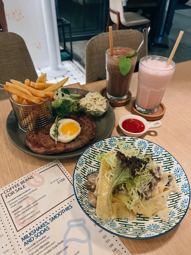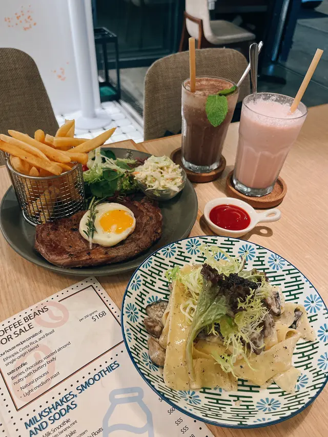 晏晝兩點幾,心血來潮自己走咗入街角間Cafe。叫咗個黑松露意粉,一上枱就打左個卡,賣相幾吸引,意粉咬落仲有啲韌勁,正!而且黑松露味好香😋飲品要咗杯magic,咖啡師手勢唔錯,奶泡打得滑,入口順滑,咖啡豆烘得香得嚟帶少少果酸,飲完成個人口腔都係回甘。 坐喺近門口位,望住街外人來人往,自己對住碟意粉慢慢嘆,一個人飲住咖啡發下夢,爽呀~平日放假去Cafe真係正,成個世界慢落嚟咁,冇人催你交枱,冇人同你搶食,就係貪呢份獨食嘅悠閒!…查看更多