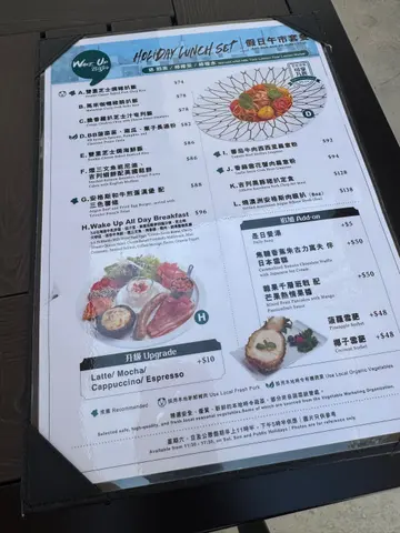 聯和墟街市經活化後,入面都有好多不同特色cafe,今次黎左呢間wake up bistro試試佢!是日餐湯(蘑菇🍄🟫忌廉湯)飲到啖啖的蘑菇粒,口感很creamy,入口很順滑田園藜麥沙律🥗沙律菜新鮮翠綠爽脆,酸酸的很開胃明太子雞翼(4隻)+芝士薯條雞翼本身已去骨,而內裡釀了明太子,口感啖啖肉之餘,仲有微微的辣味,很有滿足感!烤日本黑豚豬鞍蘋果醬豬鞍肉淋甜juicy,配上蘋果醬一起吃,豬肉鮮味更有提鮮作用旁邊配以各種蔬菜,蕃茄🍅薯仔🥔一起吃,可以中和一下口腔的油脂感明太子鮮蝦手工扁意粉每條扁意粉🍝掛上明太子醬汁,吃下去很creamy很滿足呢!再配上大大隻鮮蝦一起吃,口感挺彈牙Midnight EarlGreyEarl Grey味濃郁,建議可以沖熱水飲多2-3壺!因為沖極都仲有,不要浪費茶膽的香味哦熱錫蘭茶☕️在這個冬天喝下去暖笠笠,更有解膩作用,尤其舒服!椰子🥥雪芭吃下去有粒粒椰子🥥而且雪糕也不會太甜,恰到好處!香蕉班戟🥞(香蕉、果仁碎及楓糖漿)香蕉🍌表面用焦糖燒過,表面有脆脆的口感而pancake口感鬆軟,拌上果仁🥜碎及楓糖漿,層次感豐富,滿滿的幸福感!…查看更多