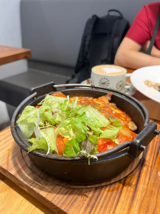 今日係想帶狗狗出嚟玩,所以專登搵咗呢間寵物友善Cafe。如果有寵物的話,就要坐室外。有兩張大枱兩張細枱,都有太陽傘可以遮到太陽,所以幾好。我哋都係揀咗呢個假日lunch Menu價錢都OK。今日個湯係蘑菇湯。天氣凍到想食啲熱嘅嘢,就叫咗焗豬扒飯,熱辣辣好足料。另外就係蟹肉意粉,味道不過不失,份量足夠。令我最驚喜係呢個甜品!估唔到椰子雪芭真係用個椰子殼裝住,表面仲有啲西柚肉。呢個雪芭椰子味好出。美中不足嘅係喺室外一定係用即棄餐具,如果冇帶狗狗嚟可以坐室內就可以用返正常餐具。…查看更多