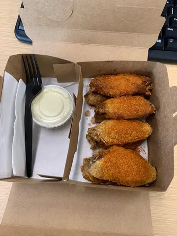 間鋪專賣雞翼,唔好見咁少相,其實係掛住食同試佢啲辣椒汁唔記得影相~ XD 我地4 個人去左食,叫左一個 8翼餐+4翼餐,套餐除雞翼之外配有 小食- 洋蔥圈、芝士條是我們㨂左,另有 薯片、菜餅個啲。啲雞翼有調味可㨂,我地分別㨂- 蒜香、及水牛味。佢係4隻翼揀一味。如此類推咁。另外加餐既但4隻㨂美式孜然。 幾個味都幾好味。雞翼可揀- 炸或煎。最特別係間鋪可以好有多支唔同辣度既辣椒汁點黎食。這個特色都幾正。我地都試左好幾支,有FAMILY LEVEL至 EXTREME LEVEL~我都有試 最辣~~都係一點都真係辣到要食奶..... 所以鋪頭有準備1 L奶盒裝提供. 呢點幾攪笑…查看更多