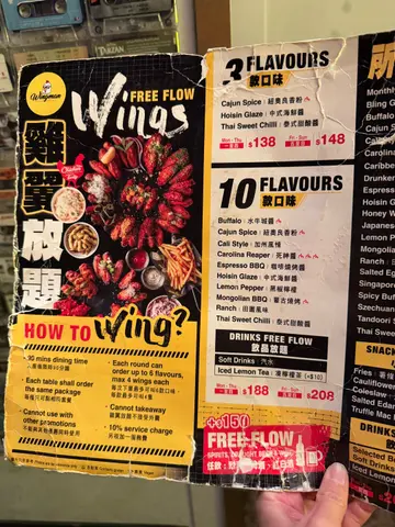 呢間餐廳都收藏咗一段時間,一直都無去食,係因為覺得食嚟食去都係雞翼又似好寡,但食完先知佢哋啲醬料真係有啲料到,喺呢度真係可以食到啲雞無晒翼🤣我哋個Pʟᴀɴ係可以叫10款味,仲包埋基本嘅汽水任飲,呢Pᴀʀᴛ真係加哂分💕可以任食嘅10款口味* 水牛城醬* 紐奧良香粉* 加州風情* 死神醬* 咖啡燒烤醬* 中式海鮮醬* 黑椒檸檬* 蒙古燒烤* 田園風味* 泰式甜酸醬雞翼炸得比較乾身,Sɪᴢᴇ都係比較平均,唔會話時大時細咁,如果鍾意食乾身嘅話,我哋推介田園風味,蒙古燒烤,田園就比較Oʀɪɢɪɴᴀʟ啲,似係佢哋嘅原味,蒙古燒烤就以孜然味為主,都幾惹味😋濕身嚟講,死神醬同中式海鮮醬都推嘅,食得辣嘅話,死神醬應該會好惹味,個辣係有層次嘅,而中式海鮮就比較特別啲,我哋食落覺得有少少似食緊北京填鴨咁🤣 其他味道都唔錯嘅,上面4款係我哋食完比較推薦😚餐廳空間不大,但當日氣氛非常熱鬧,佢最啱約三五知己上嚟吹水食雞翼飲汽水,有得任飲真係加哂分,係另類嘅Hᴀᴘᴘʏ Hᴏᴜʀ嘅感覺,重點係,唔洗就住就住咁叫😆…查看更多