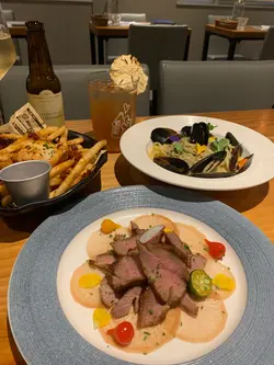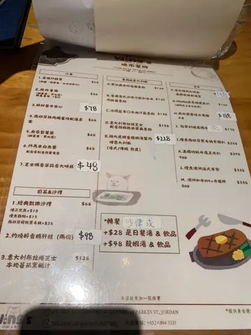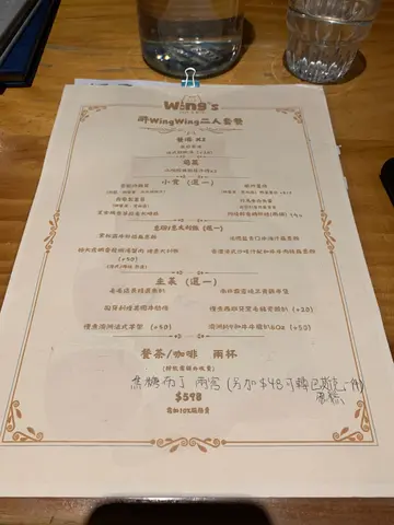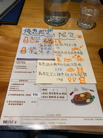 為了同九月壽星食生日飯,小妹超級努力搵餐廳,在選擇途中發現了《Wings Cafe & Bistro》,並在thread上一則有關「意大利飯」的貼文而留意到呢間西餐廳,在小妹的好奇心發作之下,決定一大班朋友嚟呢度,一齊食吓意大利飯啦😍餐廳位置在佐敦澳牛正對面的商業中心一樓,裝修好清新,兩邊牆位放滿一排排酒樽、花花草草,有種在法國酒莊食晚飯的感覺。小妹當晚一行七人主食連同小食沙律合共柯打了13道菜式,主食可加$28/$48跟餐,有餐湯及飲品,在餐點嘅部份食得出餐廳嘅細心,連同比較爭議性的「意大利飯」,小妹一行七人都覺得非常好食,並沒有網上嘅評論所說般難食喎🤔始終美食呢樣野都係見仁見智啫,不用太上心🤭🤭❤️小食:~醉秘醬牛舌心(味道非常好,配搭底下的酸酸甜甜白蘿蔔)~自家製鹹蛋黃薯蓉(失策了,應該要薯條,因為所有主菜都有薯蓉)~炸馬來白魚蛋配自家製香辣蛋黃醬(超級抵食,魚蛋數量比預期中多,蛋黃醬亦非常惹味!)~芝士焗香草蒜香大啡菇(七個人分一粒菇,粒「大」啡菇都唔大嘅)🧡前菜&沙律:~經典凱撒沙律(想食啲菜,所以揀咗佢)~意大利布拉塔芝士本地蕃茄黑醋汁(凍食大粒脹卜卜的布拉塔芝士,配橄欖油黑醋番茄仔,絕配!)💛升級套餐:~$28當日餐湯粟米海鮮忌廉湯(激似中式粟米羹)~$48龍蝦湯(香濃好味)(要大讚❣️第一次見拉花餐湯,超級用心勁窩心☺️,打卡又得味道也不錯!)💚意粉&意大利飯:~黑松露牛肝菌扁意粉(勁濃厚黑松露牛肝菌,相比另外四款,呢一碟就比較膩,但份量夠七人共享)~法國藍青口牛油汁扁意粉(印象中佢係好食,牛油好香,意粉軟硬度適中)~意大利布拉搭芝士配香辣蝦乾茄蓉扁意粉(熱食布拉搭芝士😍,都係覺得芝士熱食好食啲,喜歡嗰種煙靭嘅口感😆)~極大虎蝦皇龍蝦湯蟹肉燴意大利飯(傳統熟度)(壽星女Y成功表演用刀叉剝蝦殼,小妹感到十分佩服😆隻蝦真係好大隻,啲蝦肉真係分到七人份量,切出嚟個樣唔同你講你可能會以為係帶子🫣🫣,龍蝦湯意大利飯選擇了傳統熟度,好正常喎,亦都好香濃好食💕)💙主菜:(全部都係配薯蓉🫣)~匈牙利燴美國牛肋條(口感彈牙,起碼四條牛肋條🤭)~慢煮西班牙黑毛豬斧頭扒(九成熟)(肉質粉嫩美味,大家都讚不絕口❣️)~慢煮澳洲法式羊架(五成熟)(有成四枝羊架!比其他西餐廳算多🤭,熟度由喜歡食羊肉嘅壽星女決定,點知決定了五成,小妹第一次食五成熟羊架,紅卜卜但係未到好血腥🤣,可以接受!)整體來講,呢間西餐廳比想像中好食,意大利飯亦無講到咁難食,傳統熟度軟硬度適中,仲非常好食添❣️凍檸茶凍檸水大大杯,拉花餐湯勁窩心超可愛😍小妹會想再幫襯🫶🏻…查看更多