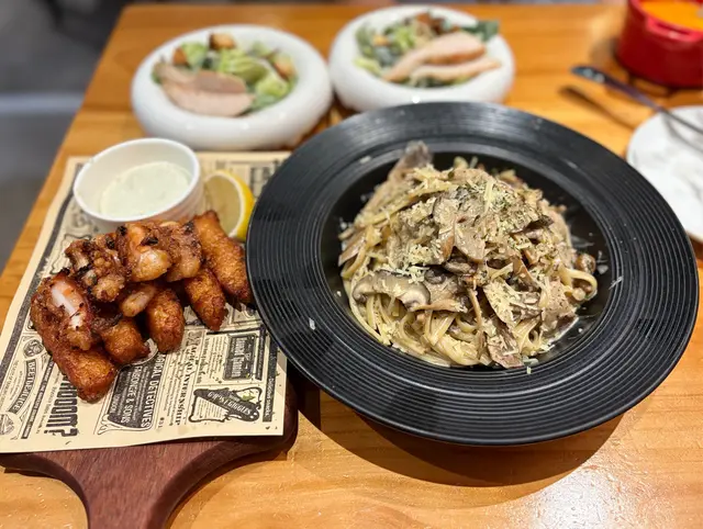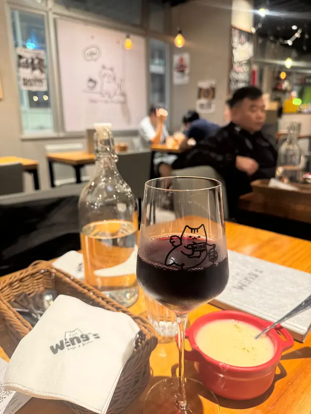 為了同九月壽星食生日飯,小妹超級努力搵餐廳,在選擇途中發現了《Wings Cafe & Bistro》,並在thread上一則有關「意大利飯」的貼文而留意到呢間西餐廳,在小妹的好奇心發作之下,決定一大班朋友嚟呢度,一齊食吓意大利飯啦😍餐廳位置在佐敦澳牛正對面的商業中心一樓,裝修好清新,兩邊牆位放滿一排排酒樽、花花草草,有種在法國酒莊食晚飯的感覺。小妹當晚一行七人主食連同小食沙律合共柯打了13道菜式,主食可加$28/$48跟餐,有餐湯及飲品,在餐點嘅部份食得出餐廳嘅細心,連同比較爭議性的「意大利飯」,小妹一行七人都覺得非常好食,並沒有網上嘅評論所說般難食喎🤔始終美食呢樣野都係見仁見智啫,不用太上心🤭🤭❤️小食:~醉秘醬牛舌心(味道非常好,配搭底下的酸酸甜甜白蘿蔔)~自家製鹹蛋黃薯蓉(失策了,應該要薯條,因為所有主菜都有薯蓉)~炸馬來白魚蛋配自家製香辣蛋黃醬(超級抵食,魚蛋數量比預期中多,蛋黃醬亦非常惹味!)~芝士焗香草蒜香大啡菇(七個人分一粒菇,粒「大」啡菇都唔大嘅)🧡前菜&沙律:~經典凱撒沙律(想食啲菜,所以揀咗佢)~意大利布拉塔芝士本地蕃茄黑醋汁(凍食大粒脹卜卜的布拉塔芝士,配橄欖油黑醋番茄仔,絕配!)💛升級套餐:~$28當日餐湯粟米海鮮忌廉湯(激似中式粟米羹)~$48龍蝦湯(香濃好味)(要大讚❣️第一次見拉花餐湯,超級用心勁窩心☺️,打卡又得味道也不錯!)💚意粉&意大利飯:~黑松露牛肝菌扁意粉(勁濃厚黑松露牛肝菌,相比另外四款,呢一碟就比較膩,但份量夠七人共享)~法國藍青口牛油汁扁意粉(印象中佢係好食,牛油好香,意粉軟硬度適中)~意大利布拉搭芝士配香辣蝦乾茄蓉扁意粉(熱食布拉搭芝士😍,都係覺得芝士熱食好食啲,喜歡嗰種煙靭嘅口感😆)~極大虎蝦皇龍蝦湯蟹肉燴意大利飯(傳統熟度)(壽星女Y成功表演用刀叉剝蝦殼,小妹感到十分佩服😆隻蝦真係好大隻,啲蝦肉真係分到七人份量,切出嚟個樣唔同你講你可能會以為係帶子🫣🫣,龍蝦湯意大利飯選擇了傳統熟度,好正常喎,亦都好香濃好食💕)💙主菜:(全部都係配薯蓉🫣)~匈牙利燴美國牛肋條(口感彈牙,起碼四條牛肋條🤭)~慢煮西班牙黑毛豬斧頭扒(九成熟)(肉質粉嫩美味,大家都讚不絕口❣️)~慢煮澳洲法式羊架(五成熟)(有成四枝羊架!比其他西餐廳算多🤭,熟度由喜歡食羊肉嘅壽星女決定,點知決定了五成,小妹第一次食五成熟羊架,紅卜卜但係未到好血腥🤣,可以接受!)整體來講,呢間西餐廳比想像中好食,意大利飯亦無講到咁難食,傳統熟度軟硬度適中,仲非常好食添❣️凍檸茶凍檸水大大杯,拉花餐湯勁窩心超可愛😍小妹會想再幫襯🫶🏻…查看更多