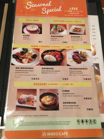 來自東京的Wired Cafe 於希慎廣場開設全港首間分店。餐廳設計時尚別緻,提供WiFi服務,是繁忙的都市人在旅途中工作、與好友相聚、或在購物時稍作休息的好地方。店內提供多元化的主菜、薄餅、前菜與甜品,滿足不同顧客的口味。