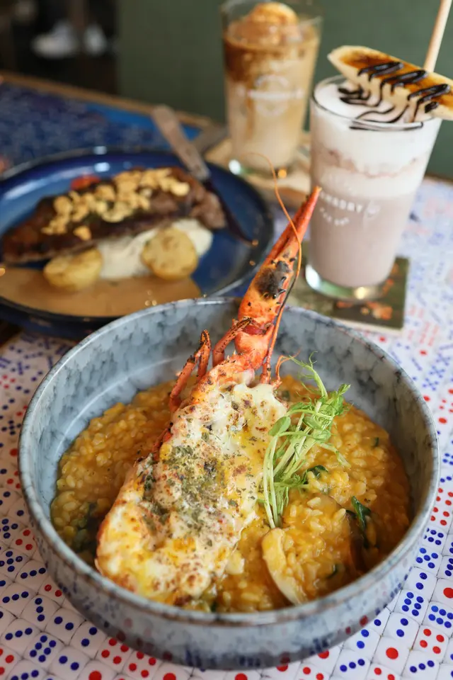 照用openrice bk去到可能算早 所以都多位未有人坐環境裝修擺設都得意特別 潮風格叫咗 吉列你隻牛 擺盤都靚肉質都算係咁 ok好食嘅龍蝦芝士意大利扁面雖然唔係超大龍蝦 但有咁上下份量食落好食 😋都香賣相幾好pizza 其實佢好多款都吸引菇pizza依個都好食蜜糖芥末雞翼就正常野都炸到脆嘅薄荷青檸梳打芝麻奶豆腐咖啡飲品都好飲 又可以打卡都有唔少新奇配搭嘅野最後好好人 當日送咗件cake俾我地試話新推出 焙茶芝士蛋糕好濃好香 好好食 🥰🤤🤤🤤…查看更多