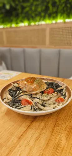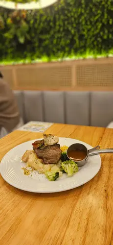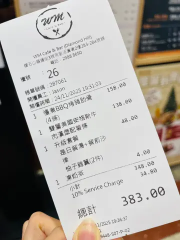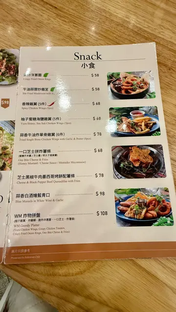 高質之選《WM Café & Bar》餐廳裝修有格調📸,打卡一流,環境光猛又舒服,啱晒情侶拍拖、閨蜜聚會,甚至一家人一齊嚟 chill 都好適合😌。食物方面選擇都幾多,而且質素有保證,性價比相當高。海虎蝦・香煎帶子・香煎穀飼牛柳 (5成熟):主菜拼盤有誠意😋,海虎蝦大隻新鮮,煎到外脆內彈牙,蝦味鮮;帶子煎到微焦,但唔過火,入口嫩滑,鮮甜味出眾🦐。牛柳五成熟,切開仲見到粉嫩色,肉質嫩滑又juicy,唔韌唔鞋,配埋特調醬汁,食到停唔到口🥩。特別一提主菜可以升級做套餐,有得加是日餐湯、餐前沙律。另外,小食可二選一,可以揀雞翼兩隻或者吉列炸蠔兩件👍🏻。蟹膏海鮮墨魚意大利粉:意粉有驚喜🖤,蟹膏香濃,撈晒喺墨魚汁入面,整體味道好立體,帶少少咸香。海鮮配料足料,有蝦有蜆有魷魚,口感豐富,意粉煮得啱啱好,有咬口唔會淋,啖啖都食得出有誠意🤤。蒜香牛油香炸單骨雞翼:小食邪惡到極點😈。雞翼炸得金黃香脆,牛油味滲入雞肉入面,再加埋蒜香,未上台已聞到香味😍,一啖咬落去仲有肉汁爆出嚟,唔會乾柴,超正😄。熱抹茶牛奶:抹茶控必定試,抹茶味濃郁,但唔會好苦,入口香滑,比例調得啱啱好。飲完之後成個人都暖晒,啱晒就黎冬天,飲返杯慢慢嘆☕️。芒果百香果青檸特飲:芒果味香甜,百香果酸酸甜甜,再加埋青檸清新,真係即刻醒神。飲落去酸甜平衡,解渴又解膩,打卡影相更加係正正📸。總結:餐廳無論環境定食物都好有水準,餐廳裝潢時尚打卡一流📸,食物選擇多,價錢合理,而且套餐配搭彈性大,啱晒唔同口味人士😋。…查看更多