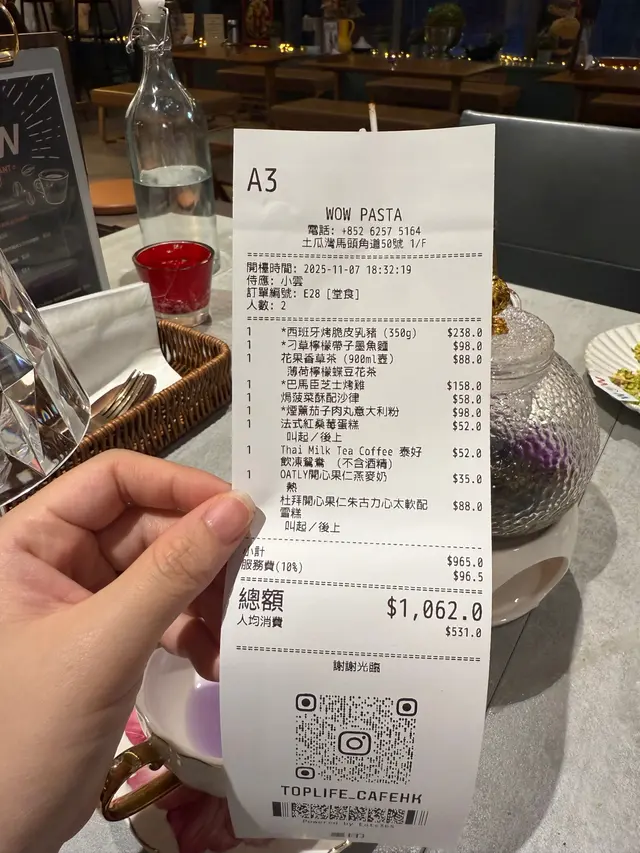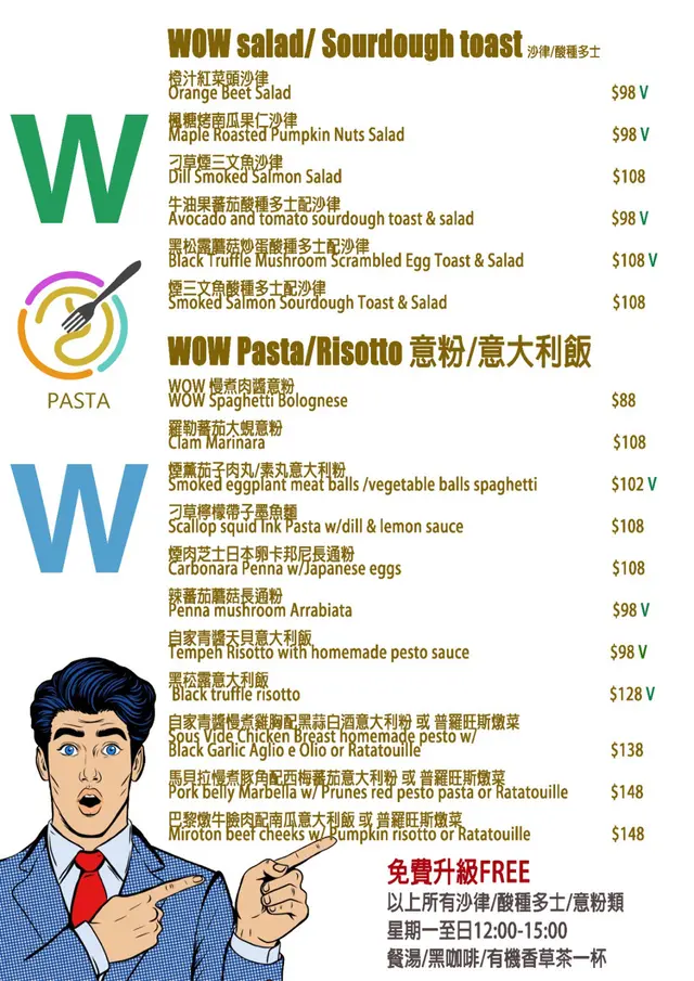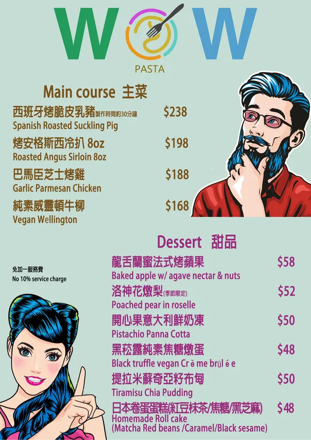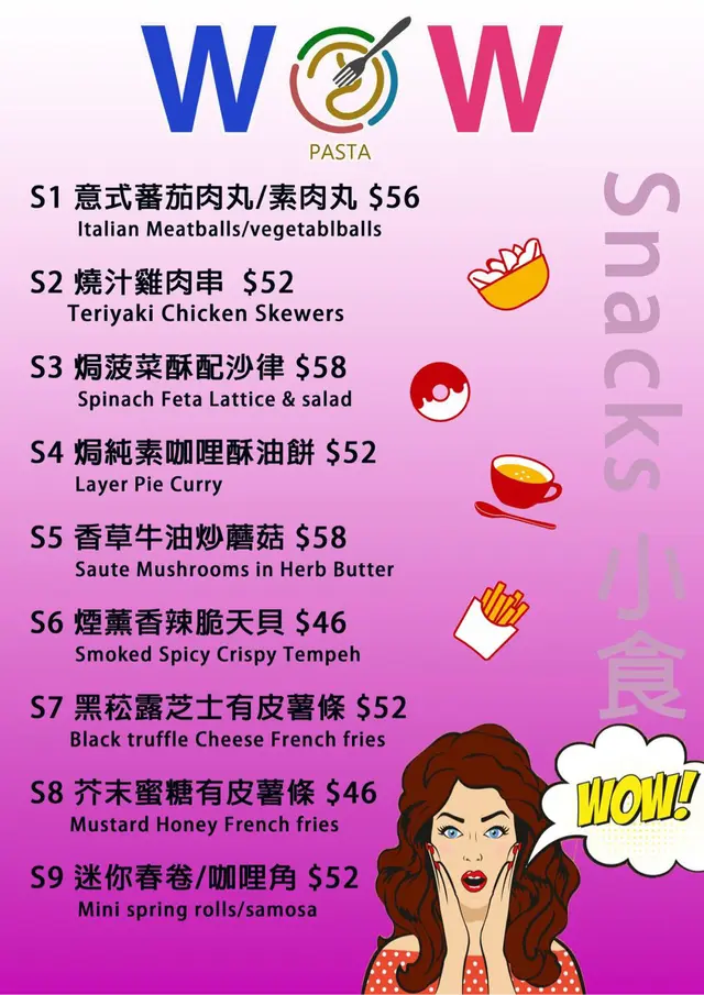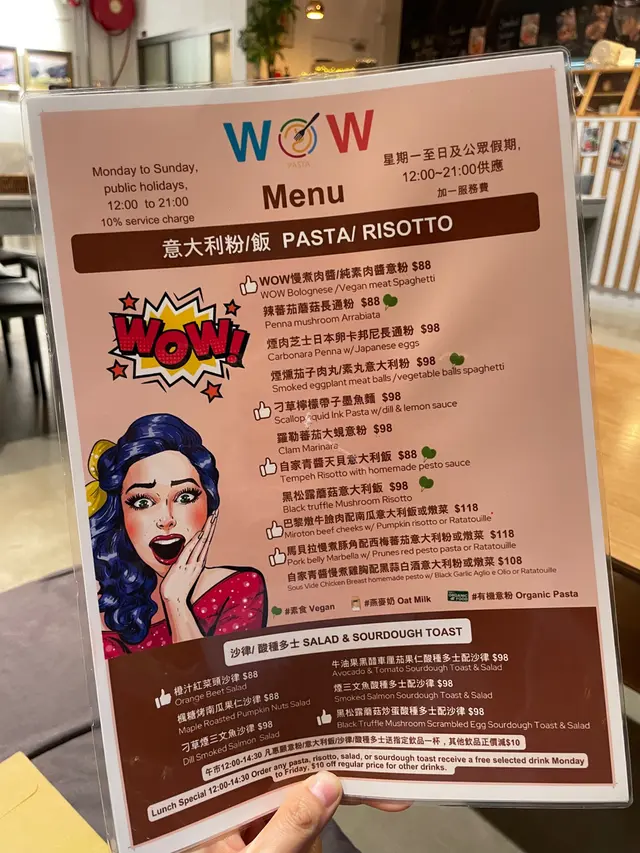 WOW PASTA (土瓜灣) 網上訂座享特別優惠兼賺Rice Dollars 網址: https://s.openrice.com/QrbS0V9eD00 地址: 香港土瓜灣馬頭角道50號迎豐1樓 電話: +852 62575164