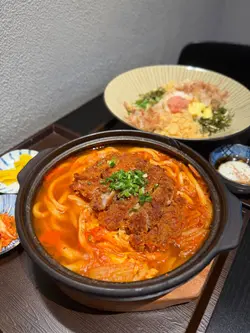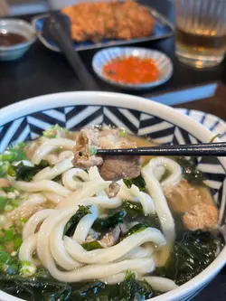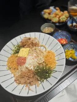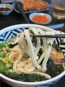 日式炸雞澆汁冷烏冬 ($118) ★★★✰✰逾百元的烏冬有三件炸雞,炸雞不過不失。值得一提是當湯汁倒進碗中,拌勻後天婦羅脆脆已經完全變淋溶掉,令烏冬湯都變得混濁,賣相有點難看。整體而言,這間烏冬價錢定位進取(可能也因為位於商場),質素不見得有一些宣傳帖子所説如此驚豔。而且當日隨着入座人數越來越多,上菜時間便越來越長,第一個餐和最後一個餐的上餐時間相差15分鐘,如果每人一個餐的話在等與不等之間便有點尷尬。…查看更多