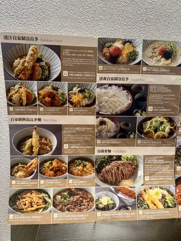 這次再來雙子匯食飯,選了這間頗具人氣的烏冬店,之前食飯時間經常見到門外有人排隊,這次假日午膳時間(12時許)竟然不用排隊直入。餐牌上有很多不同烏冬選擇和食法,此店最有名的應該是闊條烏冬,不過每日限量發售。我對特殊形狀的烏冬沒有什麼興趣,叫了經典的冷烏冬和熱烏冬。