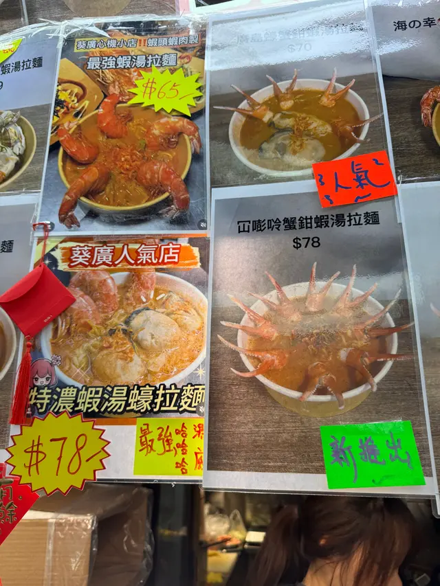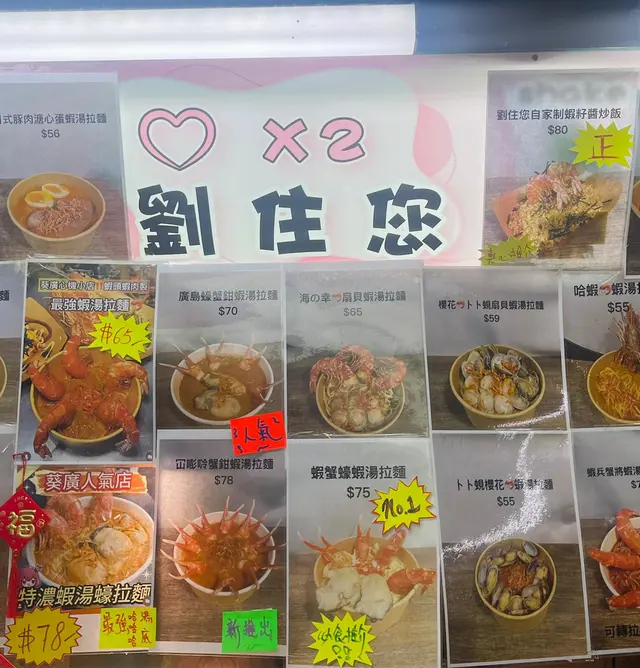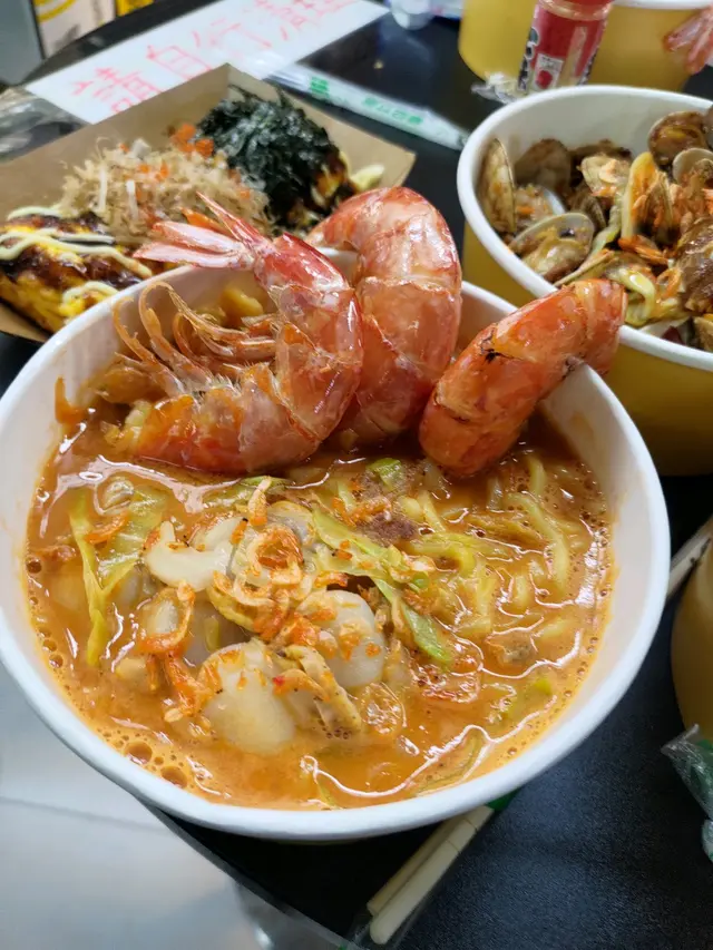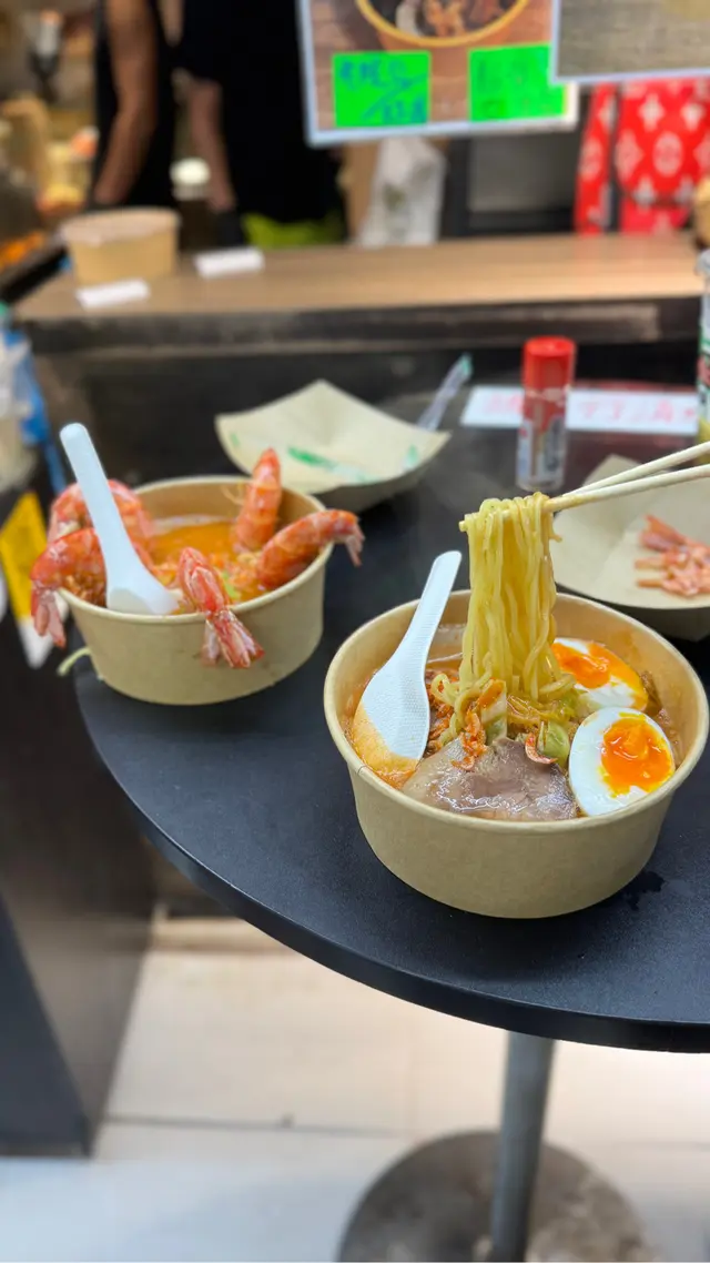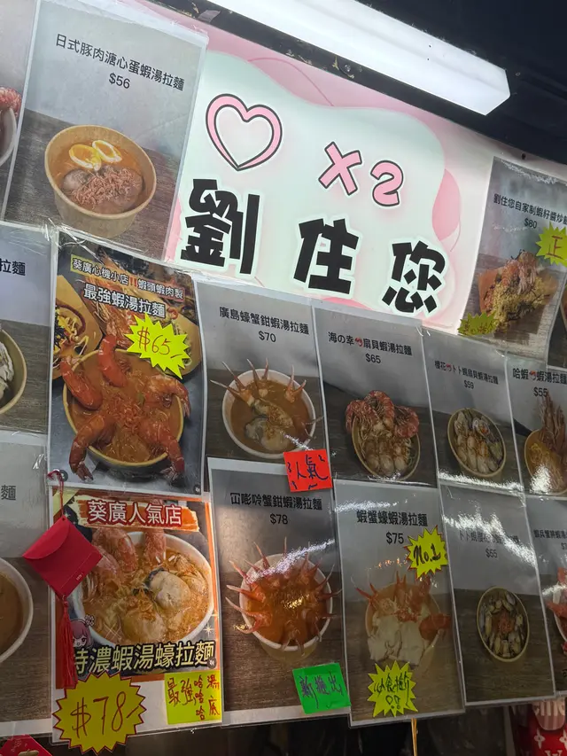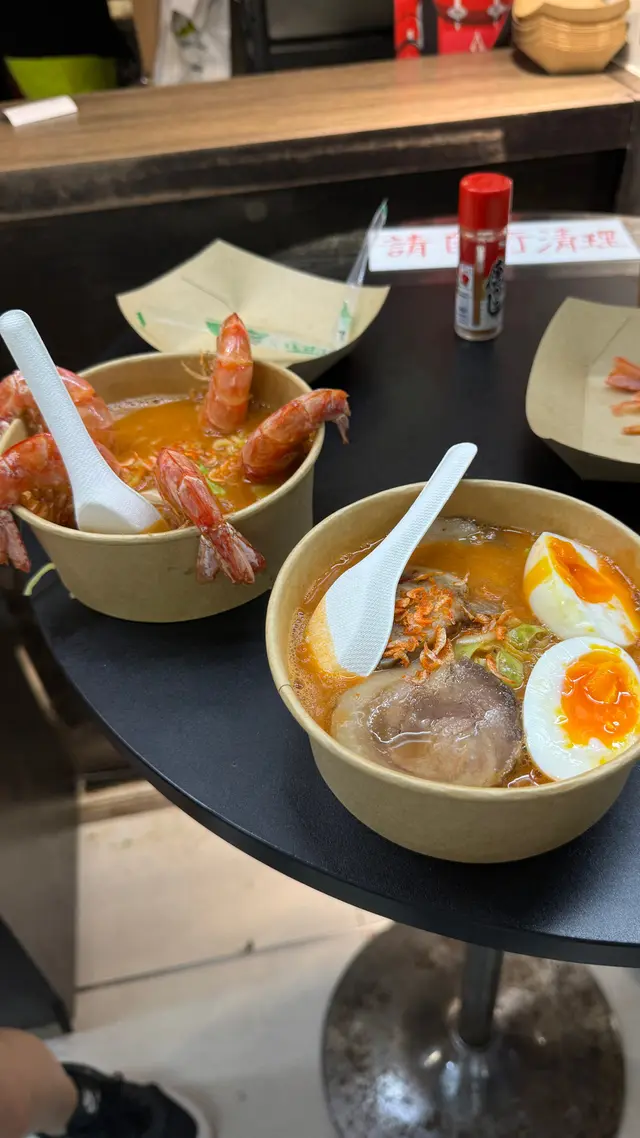 舖面貼滿唔同菜式,真係多到眼花撩亂,最後揀咗佢哋嘅蜆肉蝦蝦湯拉麵,結果完全冇失望!蝦湯濃郁到癲,應該用咗大量蝦頭慢煲,鮮味爆棚,平時唔飲湯底都忍唔住飲到差唔多清晒。湯底香濃得嚟唔會過鹹,層次分明,真係飲得出心機。拉麵入面有三隻大蝦,啖啖肉,鮮甜好食;蜆都唔少,令整碗麵更添海鮮鮮味同口感。麵質適中,唔會太淋,整體配搭非常出色。以呢個價位嚟講,性價比真係高。唯一美中不足係舖頭只有企位,人來人往食得有啲趕,但味道絕對值得忍耐一下。鍾意超濃蝦湯嘅朋友,呢碗拉麵你一定要試!…查看更多