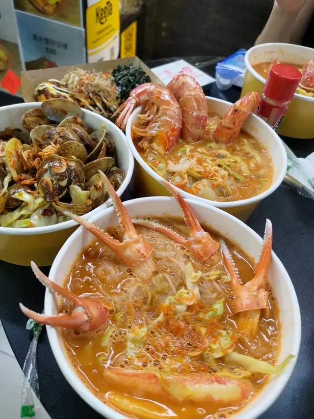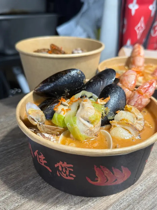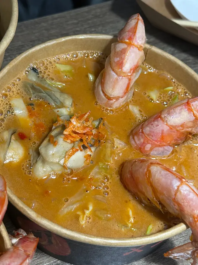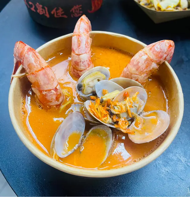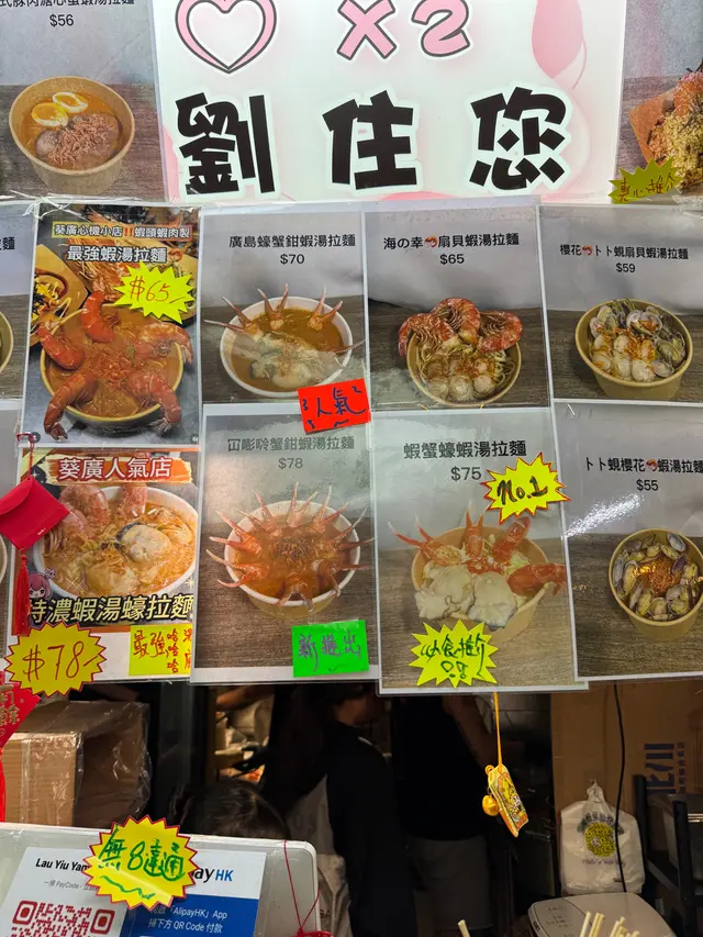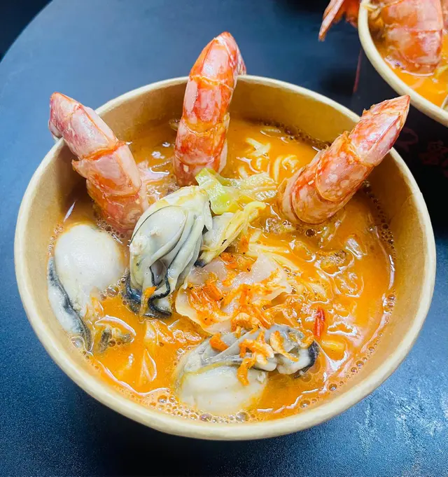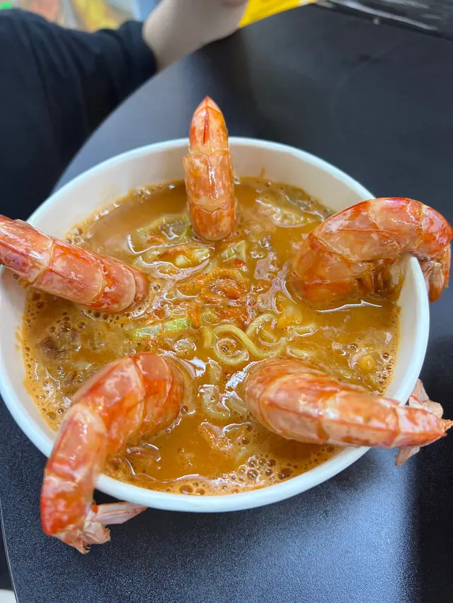 舖面貼滿唔同菜式,真係多到眼花撩亂,最後揀咗佢哋嘅蜆肉蝦蝦湯拉麵,結果完全冇失望!蝦湯濃郁到癲,應該用咗大量蝦頭慢煲,鮮味爆棚,平時唔飲湯底都忍唔住飲到差唔多清晒。湯底香濃得嚟唔會過鹹,層次分明,真係飲得出心機。拉麵入面有三隻大蝦,啖啖肉,鮮甜好食;蜆都唔少,令整碗麵更添海鮮鮮味同口感。麵質適中,唔會太淋,整體配搭非常出色。以呢個價位嚟講,性價比真係高。唯一美中不足係舖頭只有企位,人來人往食得有啲趕,但味道絕對值得忍耐一下。鍾意超濃蝦湯嘅朋友,呢碗拉麵你一定要試!…查看更多