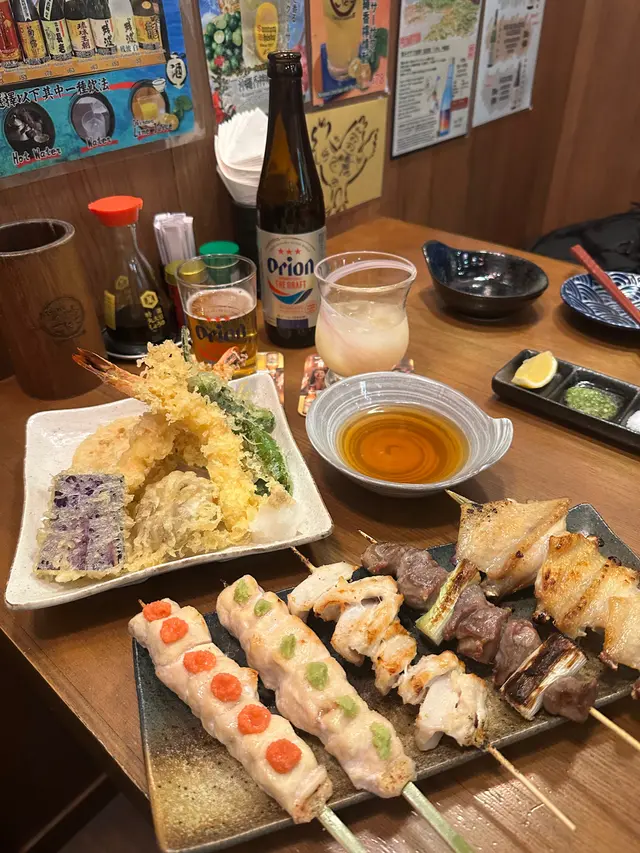繼續發掘香港嘅日式居酒屋~ 之前經過灣仔小巷偶然見到間幾有特色嘅餐廳,上網一 search 原來係由日本人親自主理嘅東京過江龍居酒屋!店內環境舒適,充滿濃厚嘅日本風情,氣氛一流 ❤️ 呢度主打沖繩料理,無論食物或飲品都有好多選擇,好適合收工後同朋友過嚟 chill 下!前菜係每人一份日式蘿蔔炆牛腩,好淋身好入味 😋😋 沖繩苦瓜釀免治雞肉 ~ 一向都幾鍾意沖繩苦瓜,口感爽脆,味道唔會太苦澀,係慢慢滲出苦瓜嘅甘苦味,釀入免治雞肉又幾香口!😋 吉列芝士火腿三文治 ~ 好邪惡嘅三文治!炸至金黃色嘅外皮,中間夾住流心芝士同火腿又濃郁又惹味,滋味無窮!叫咗多款串燒如雞皮、雞屁股、雞軟骨、雞肝,另外仲有明太子薯仔沙律、燒明太子、獅子唐青椒、雜錦天婦羅等等,每款菜式都係咁出色!…查看更多