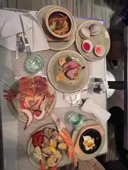 好久以前幫襯過佢哋的自助晚餐🍽️, 不過當時都係比較暗黑的燈光🕯️, 今次星期四晚過來, 用左openrice 的折扣coupon, 比安排坐四人方枱同隔離share, 光線光左好多☺️, 安排的座位似乎冷氣比較凍🥶, 要飲熱野☕🍵, 出面有果汁都唔夠膽飲, 又唔想飲咖啡檸茶之類, 揀左TEA WG的洋甘菊🌼🌻, 味道唔錯, 冲出來幾香😘, 好少見buffet比依個牌子的茶包, 有驚喜😚, 之後出去先拿d熱野食, 蒸魚味道唔錯, 好滑😋, 黑松露意粉就太咸, 青口🦪同蜆都好食, 蟶子好食但咸左d, 有一舊舊花膠, 都炆得幾入味幾淋🤭 推介💯, 見到一盤鵝掌滯銷🤣🤣, 另一盤試鮑魚仔非常好銷路, 我都encore左, 炆得好淋😍好入味也是推介💯, 有燒鰻魚, 不過食落扁甜有d渣, 但一試無妨, 燒海虎蝦🦐, 亦係真心推介💯, 行左好多次先食到, 夠大只夠新鮮夠彈牙爽口, 燒三文魚見到又係滯銷😅😅, 海鮮炒飯都可以一試, 切羊扒味道麻麻, 但一試無妨, 鴨肝多士都可以一試, 凍肉那邊都值得一試, 吞拿魚, 薯仔羊肉沙律同水牛🧀芝士夾南瓜, 都值得試下🤩, 壽司🍣同刺身都真係好唔錯, 好夠新鮮🥰, 帶子刺身勁大粒💯, 中式燉湯同海鮮粥都幾好, 凍海鮮就試左🦪青口, 蝦🦐同麵包蟹🦀, 都屬於值得一試🤭, 不過生蠔, 海南雞, 片皮鴨, 西湯, 龍蝦仔, 天婦羅, 麵包, 生果, 雪糕等就無試到, 一人拿一只的豚肉蟹王餃, 味道唔差, 但上面的皮個個摺位食落太硬身, 都係只食下面那忽😆, 另一個用鍋仔裝住的茄蓉海鮮, 舊魚硬到食唔到🤣, 甜品方面試左幾款, 味道唔錯, 例如豆腐花, 紅絲绒cake 仔, 朱古力cake 仔, 我個人就最喜歡個葡撻💯同杜拜朱古力拼盤💯, 算係唔差的自助晚餐的好地方, 值得一試😃…查看更多