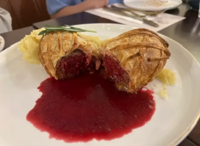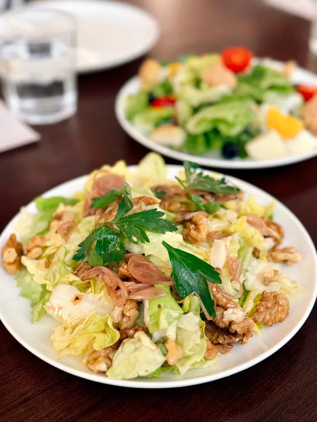 狗狗爸爸睇到社交平台帖文,餐廳喺4-7/10 1200-1700推出牛扒薯條tasting menu,每客$249,包經典核桃沙律同主菜(牛扒薯條),主題吸引,一於訂位試試。周日1345到達,喺餐廳側邊的食肆人多狗狗多,但呢度冇食客,變咗包場。沙律好快送上,諗住快少少食完便離開,可惜其後出現小插曲,最後食咗2個鐘。經典核桃沙律:之前食過,鍾意沙律入面的醃洋蔥;食材簡單,有羅馬生菜、醃洋蔥同核桃,醬汁係略帶檸檬味的橄欖油;生菜爽脆;醃洋蔥微酸,唔鹹,開胃;敗筆係核桃,食落好腍,冇正常脆身的口感,食多幾粒先察覺佢氧化咗,有油膉味;向狗狗爸爸求證,佢都食得出,只好同侍應反映,之後廚師親自向我哋了解,其後亦解釋批核桃係前一日焗好,餘貨亦唔係粒粒出現同類問題,所以餐廳都唔確定成因;最後,廚師主動提出換過另一款沙律俾我哋尼斯沙律:之前喺度食午餐,可以揀尼斯沙律/核桃沙律,呢款沙律雖然食材豐富(羅馬生菜、素吞拿魚、雞蛋、車厘茄、薯仔),但唔係我的心水,不過餐廳只得2款沙律,所以當聽到換另一款時,都知道係尼斯沙律;沙律料多,食材新鮮,只係薯仔連皮烚,冇調味,麻麻地;製作呢個沙律要烚蛋又要煮薯仔,所以,上菜需時,時間觀感真係幾長牛扒薯條:有一份由侍應送上,另一份由一位唔係穿著黑色廚師服但又應該對菜式熟悉的店員/店主送上,佢提我哋一定要連汁食;呢件素牛扒由𤠣頭菇製成,估計每份餐用咗2隻菇,而餐廳又冇花太多心思擺盤,令牛扒的presentation唔靚,沿邊位巖巉,模仿上冇咁逼真;撇除擺盤,主菜都幾好食;偽裝成牛扒的猴頭菇染咗鮮紅色,有牛扒血腥的視覺效果,口感上係菇的軟腍,至於味道方面,如果唔點醬,依然食到少少甘苦味(唔知餐廳係咪自己浸發𤠣頭菇,處理程序又真係唔簡單),配合醬汁可有效覆蓋到陣甘苦味;薯條唔熱但鬆脆,不過因為超幼,所以冇乜薯味;醬汁係靈魂,每次嚟游,最期待就係醬汁,呢款醬creamy,唔識形容佢的味道,但入口溫和呢個餐冇加一,抵唔抵食見仁見智,我抱嘗新的心態嚟,的確得到我想要的體驗,但客觀咁計,1個沙律+2塊猴頭菇+1堆薯條+醬汁,唔算抵食,所以,要諗多啲係研發呢道菜的時間同心思。食完後,心諗:我會再幫襯嗎?今次出現核桃沙律同擺盤呢啲小細節問題(前者餐廳都有誠意處理),我覺得呢度的消費同餐廳對細節的執著未算對等,而呢一點係由第一次嚟食嘢直至而家,都喺唔同範疇呈現,令人又愛又恨,而且一次又一次,難免失望~…查看更多