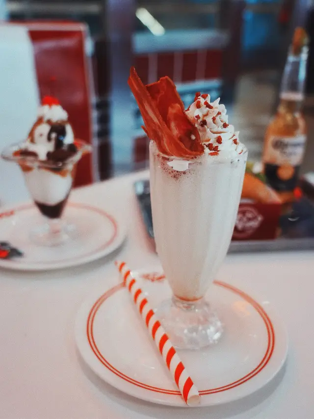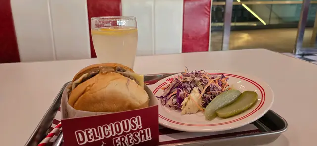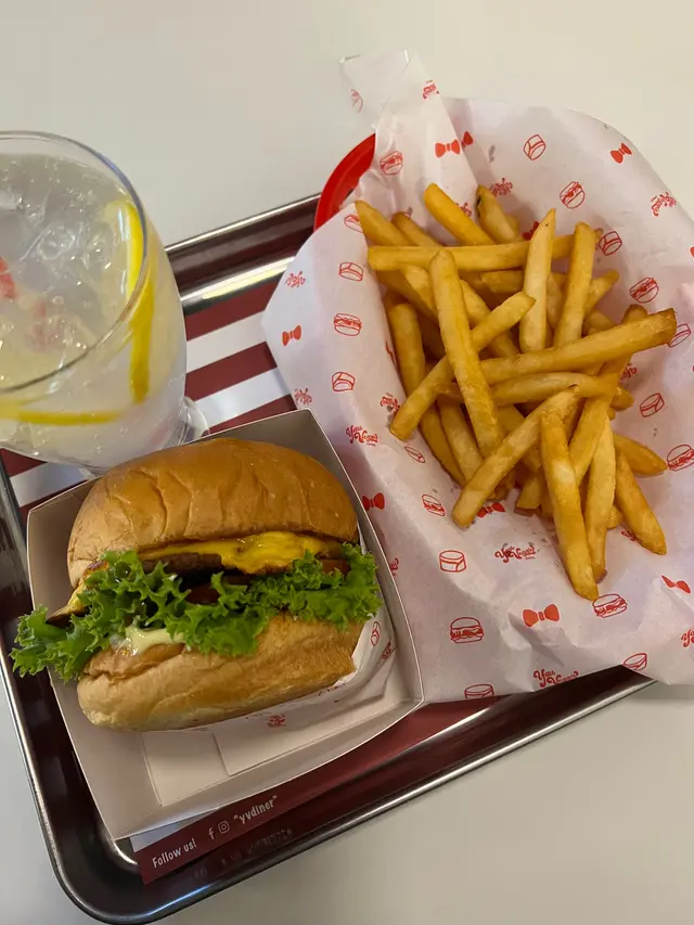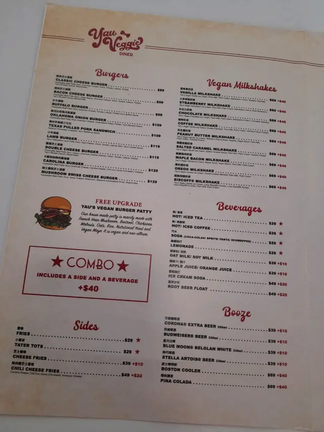 大前日(26-4-2025 Sat)同老公行南豐紗廠,買完嘢,都搵間嘢坐低飲同食嘢,見到好多間食過,未食過嘅食肆都執咗,變咗唔少。(無盡 唏噓)我哋經過呢間食漢堡,見價錢都係差唔多而且裝修特別,好有古舊嘅美國feel,於是入去坐低 ,睇完menu就要咗:4. $69.00嘅花生醬奶昔呢個唔大杯,面上唧咗忌廉,飲落,花生味道好夠,但好細杯,咁轉角見(https://www.openrice.com/zh/hongkong/r-%E8%BD%89%E8%A7%92-%E8%A6%8B-%E8%8D%83%E7%81%A3-%E8%A5%BF%E5%BC%8F-all-day-breakfast-r435952)就抵好多。1. $89.00嘅經典芝士漢堡睇見件漢堡唔似素食,但食落就真係豆味嘅素,口感似牛肉漢堡咁鬆同juicy,個包烘得好脆,而佢嘅份量都幾大。2. 叫主食加$40.00成為套餐之一嘅小薯波份量接近兩個薯餅,口感同薯餅一樣,冇乜問題。3. 叫主食加$40.00成為套餐之一嘅檸檬梳打老公一飲覺得好正,因為清新解到膩,但我飲就覺得唔好飲。其他:menu啲字太細粒。抵食係2.5分…查看更多